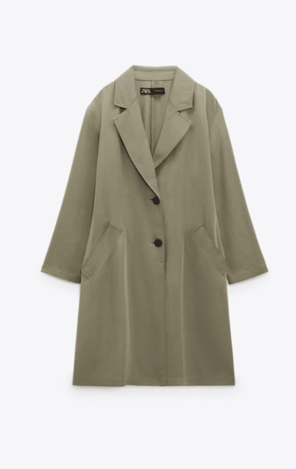 Every fall season, I lust after MaxMara and Burberry trench coats, and would never justify purchasing a poorly made replica of a belted slim-fit designer silhouette. This Zara khaki green flowy trench is entirely different. It isn’t trying to be something it’s not. This trench offers a purposeful but effortless look (for less) in a unique color and oversized shape. I love it.