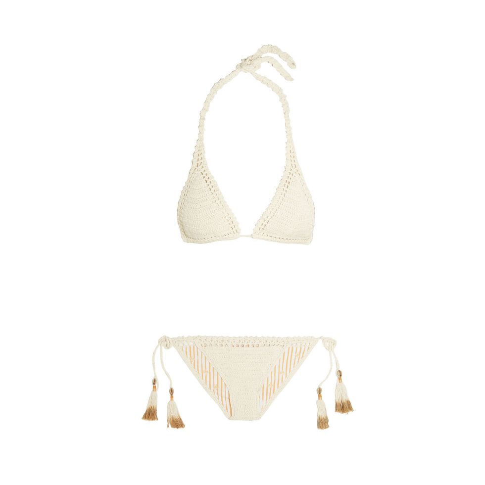 “Divine Decadence, red lipstick, mascara, sunblock, bikini—I like a triangle bikini, the smallest one possible!, sunglasses...how many is that?” [laughs]