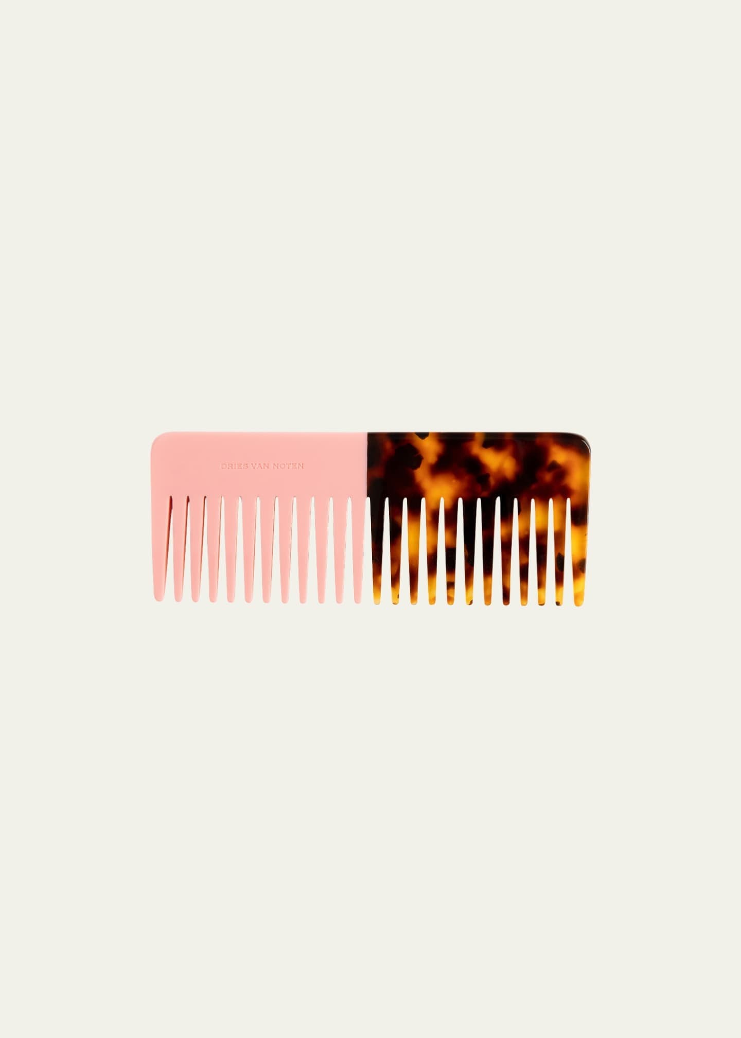 Belgian designer Dries Van Noten’s avant-garde color-blocking, patterns, and bold use of pigment can also be found in his beauty collection. Think pretty and practical with a chic Italian resin bicolor comb that’ll add to your vanity vignette when not in use.