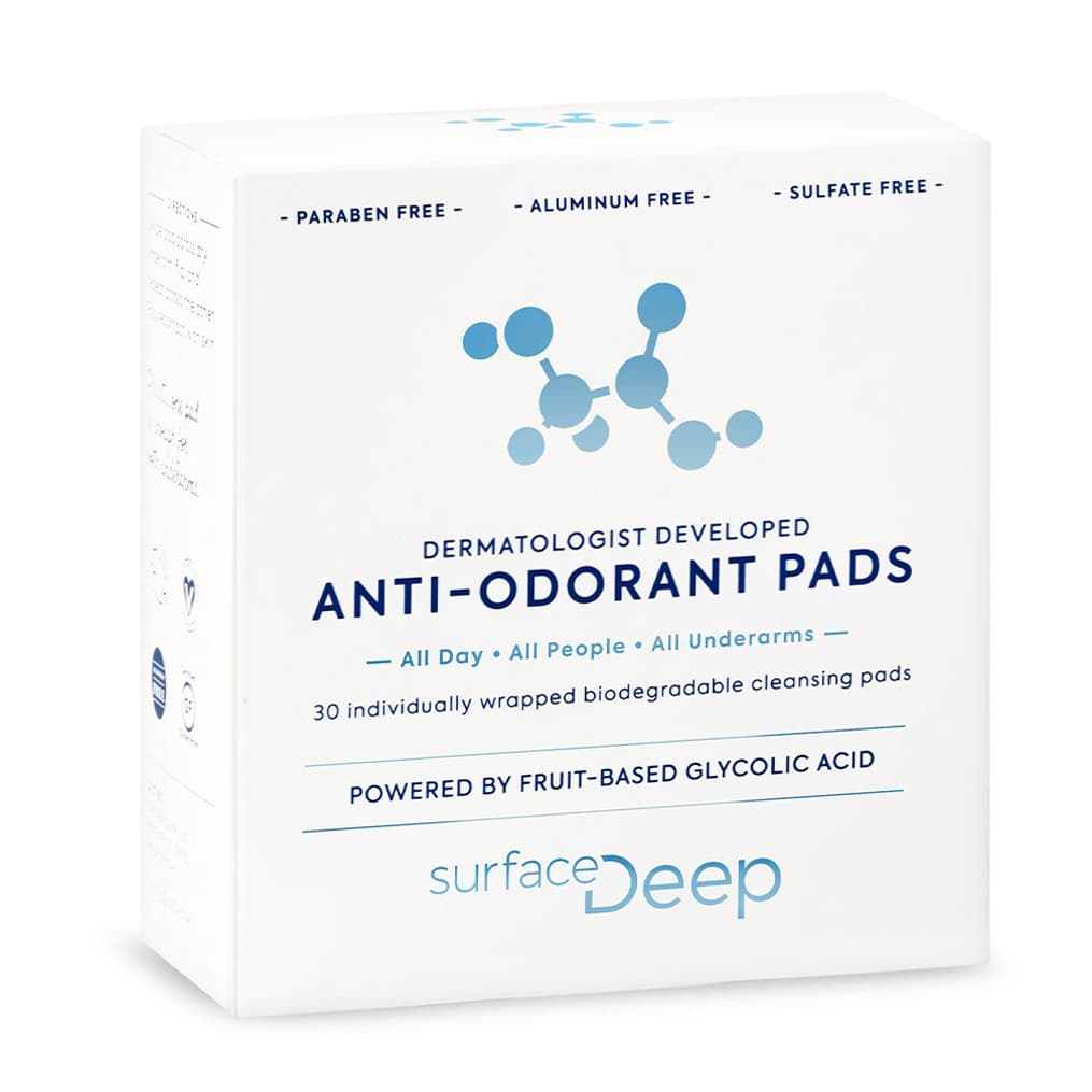 . Products like these use a blend of alpha hydroxy acids and beta hydroxy acids—like glycolic and salicylic—to gently exfoliate dead skin cells, dirt, and buildup, leaving you with a soft, smooth canvas. Similarly, when used on your underarms, these ingredients destroy a large portion of odor-causing bacteria.