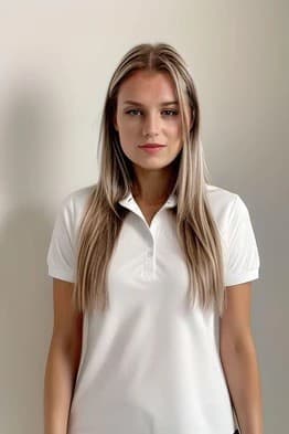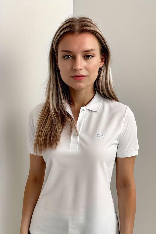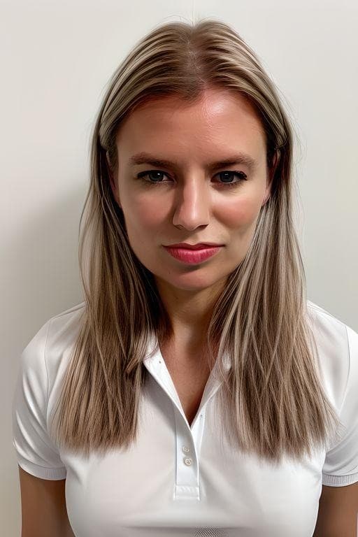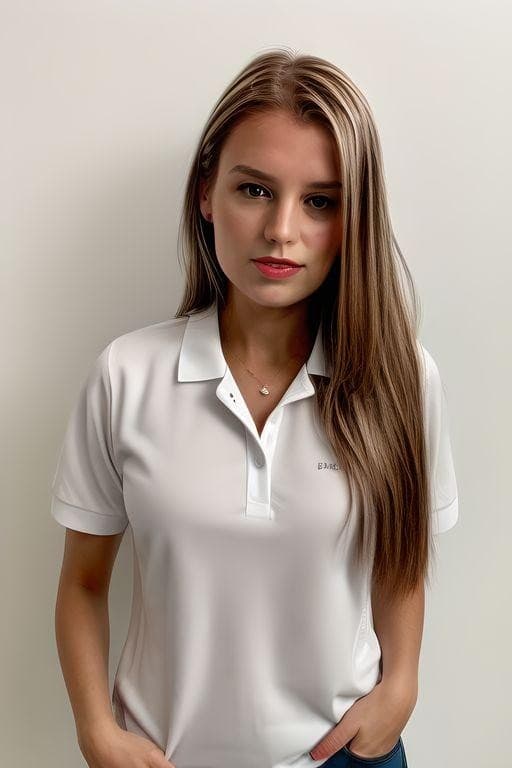 None of my input pictures had bangs, so there’s no real reason for this particular series. Something about it making the decision to continually put me in MySpace side bangs was feeling like a dig about my millennial age. Are faces in their early thirties just best represented on the internet by bad bang-ed Facebook profile selfies? Likewise, judging by the clothes, this AI clearly lied on its resume about knowing the definition of “professional.” Baggy t-shirts and branded polos, for anyone not handing out towels on a yacht, are clearly not within the popular understanding of “professional.” Likewise, while I have to give the AI credit for inventing a garment I’m certain no human has ever before conceived of–the scrunchy terrycloth shrugs above-they are, again, not within any existing definition of “professional attire.”