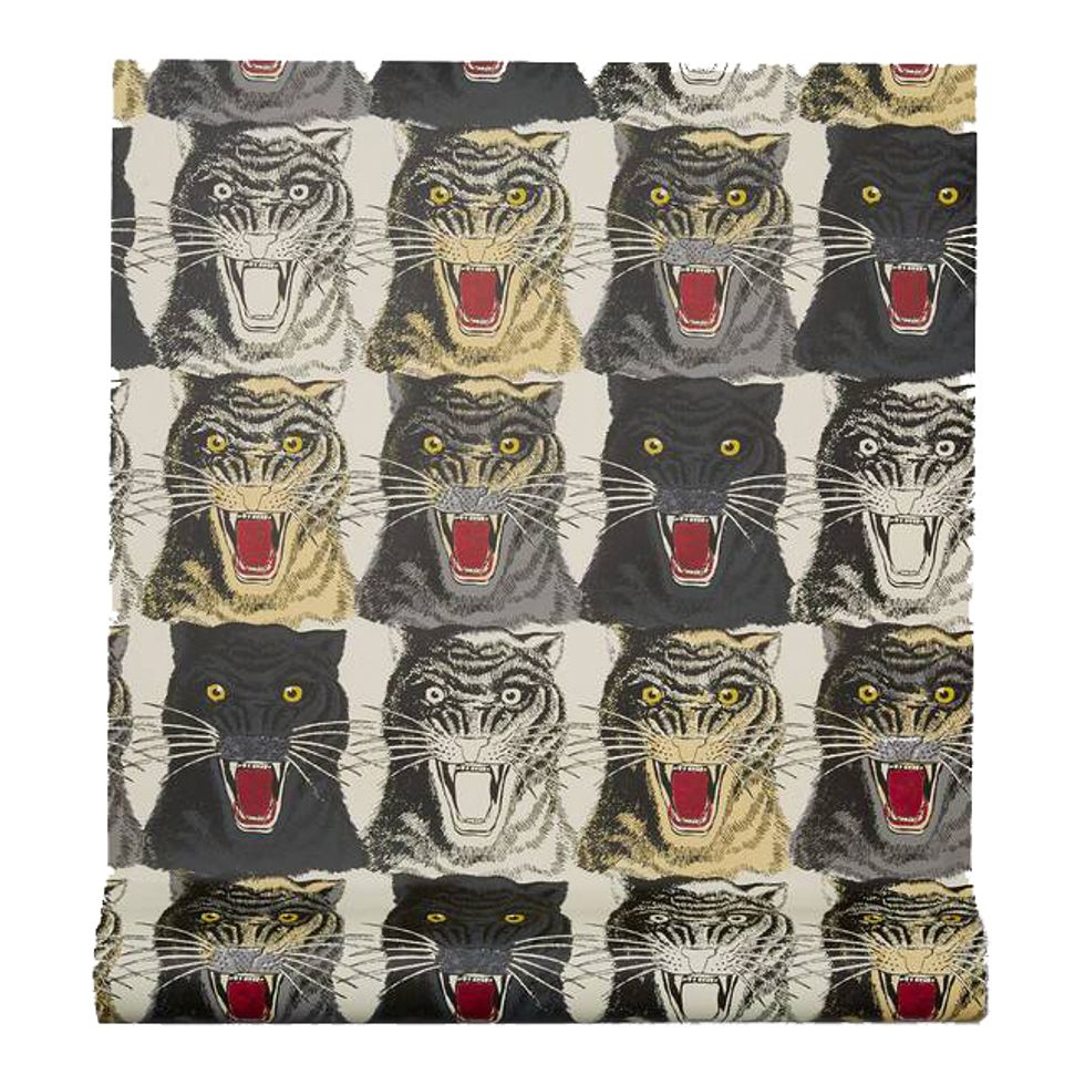 Spaces they gutted, like the kitchen and bathrooms, are much more pared down in a decor sense, implementing modern design elements into the old space. Despite a minimalist undertone, the two were not afraid to toss some conversation starters into the space. We’re talking about the mismatched gallery wall where each piece has some sort of sentimental value, the embroidered tiger rug mounted on the wall (a purchase from a market in India), and don’t even get us started on the Gucci tiger wallpaper in the guest room!