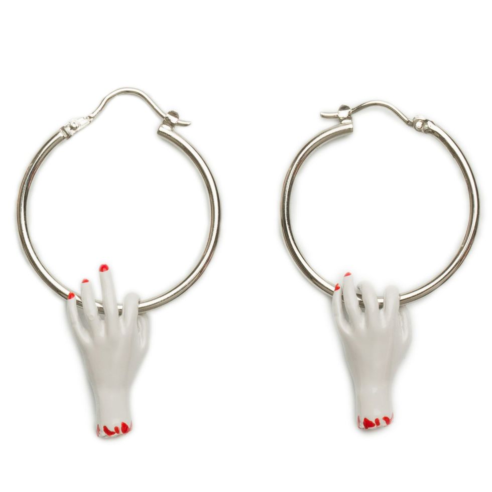 If your severed hand hoop earrings could get a manicure anywhere, where would they go and what design would they get?