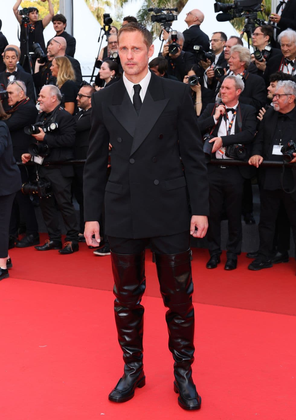 Getty ImagesHis film, Pillion, sees Skarsgård play the leader of a queer motorbike club who falls into a BDSM relationship wherein he is the dom. Earlier that day, Skarsgård set the tone for his leather-clad looks at the Pillion premiere in tight leather pants, motorcycle boots, and a white baby tee. Method dressing!