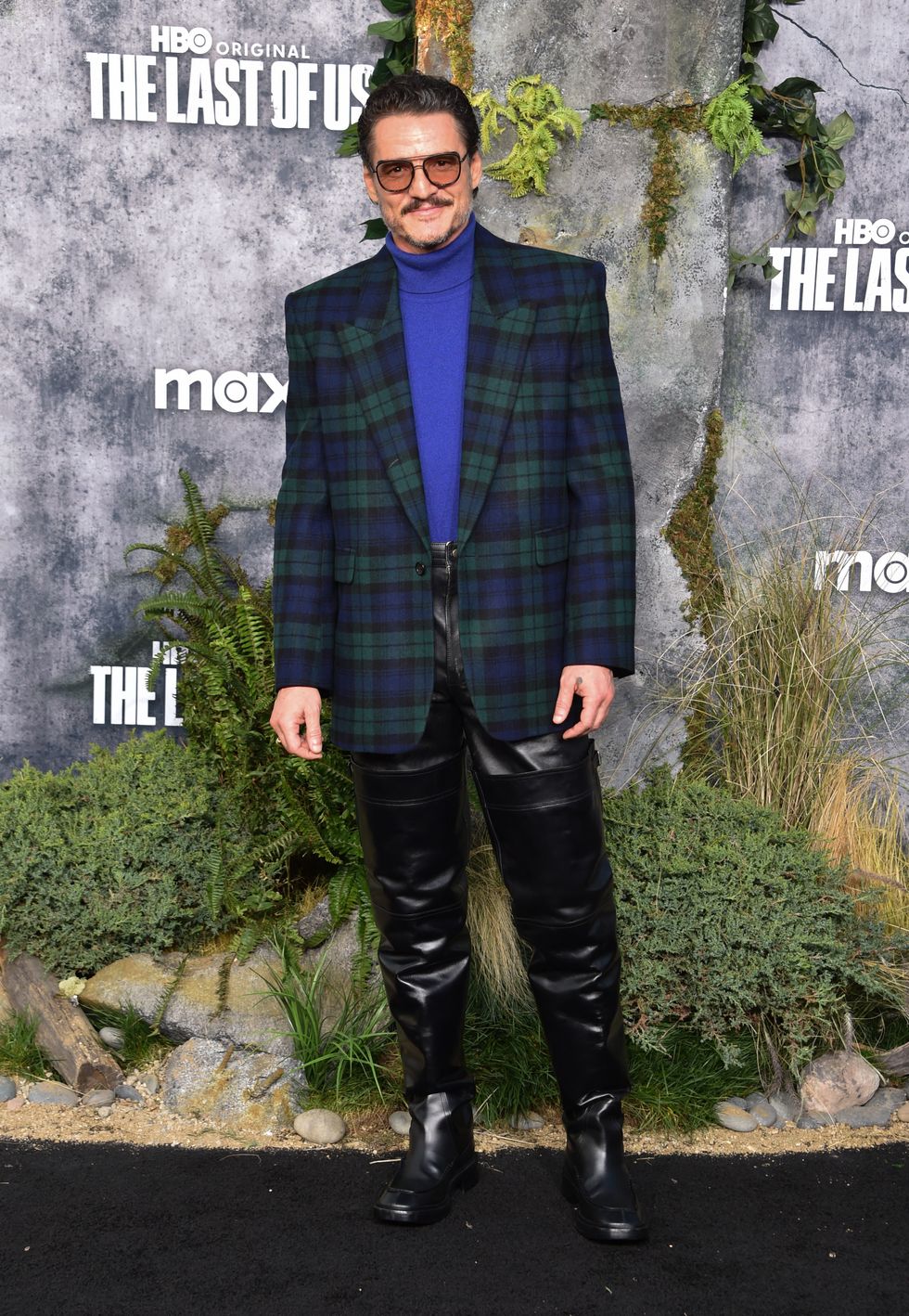 Inside the premiere, during the seven-minute standing ovation the film reportedly received, the actor was spotted hugging some kink fans in pup hoods and kissing Pedro Pascal, who happened to wear look 19 from the same Saint Laurent Men's collection back in March for The Last Of Us season 2 premiere, complete with the same thigh-high boots.