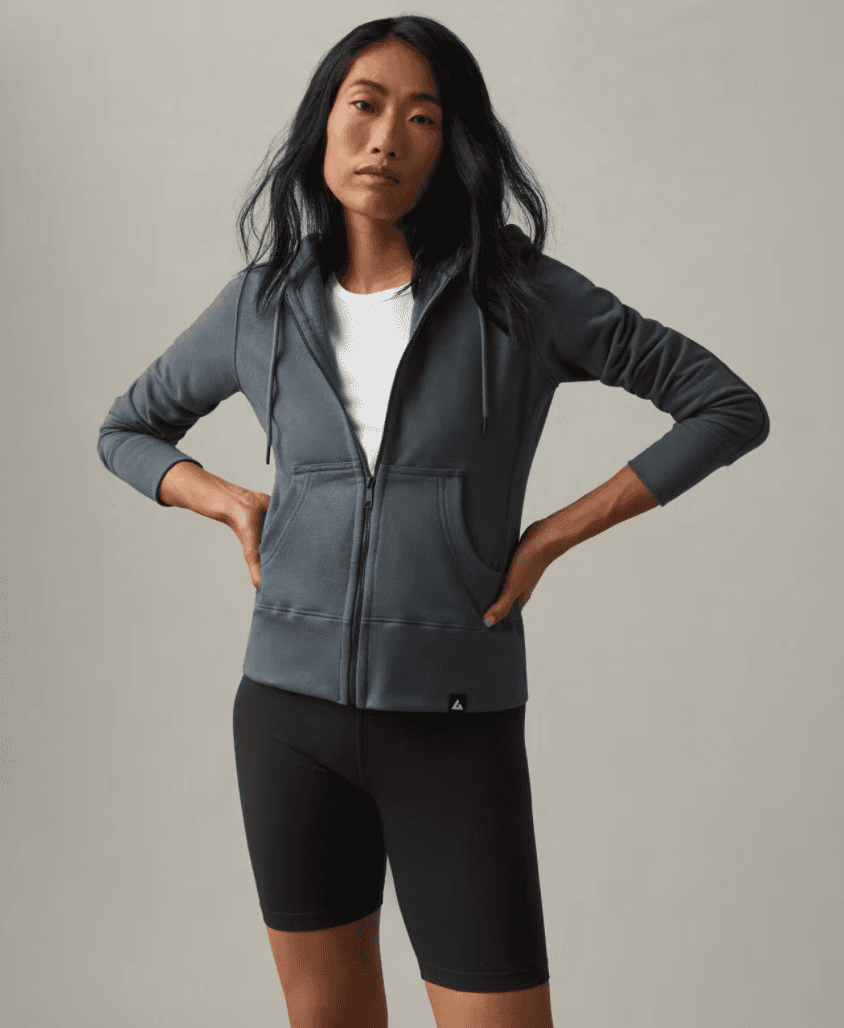 How cute is this hoodie with bike shorts? I feel like this look was made for going on a hike in L.A.—which I have never done, but you know the vibe I’m talking about. Aesthetics aside, American Giant is showing off its signature quality-based attention to detail with this “greatest hoodie ever,” featuring a double-lined hood and reinforced elbow patches to reduce wear and tear. Genius.