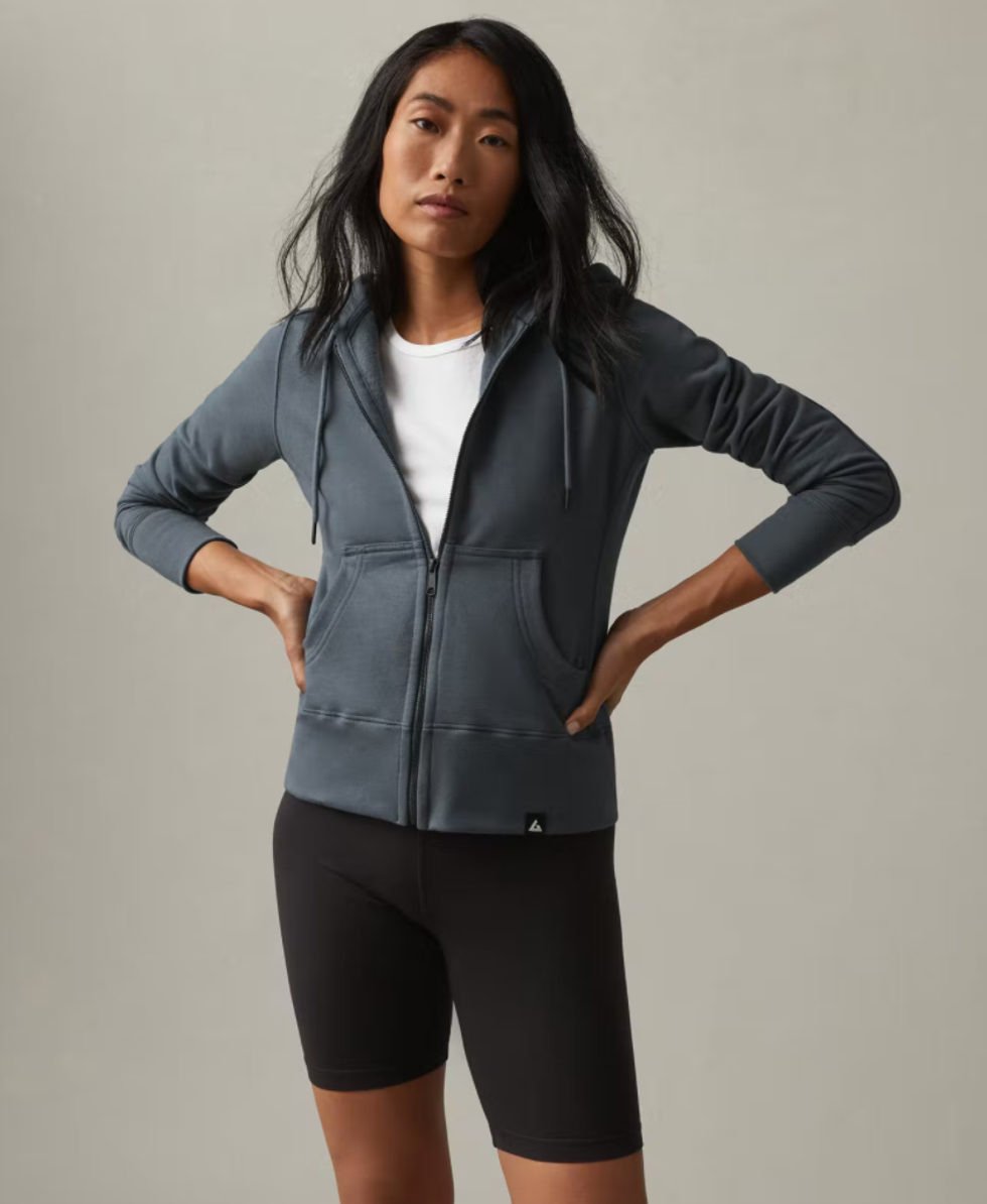 Not a hoodie girl? Bring in the Moto Full Zip. I tend to opt for slimmer fit jackets when pairing with leggings or to and from the gym, and this piece offers the streamlined look while ensuring major warmth. Bonus: There are several limited-edition colorways available (think muted and gorgeous).