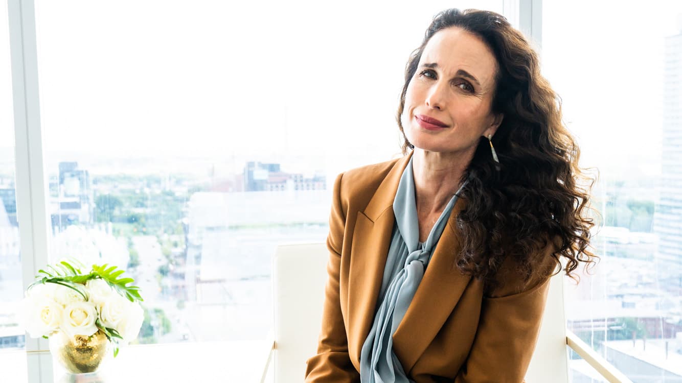 When I walk into the 17th-floor suite of an east end Toronto high-rise, Andie MacDowell is standing in a muted caramel Hugo Boss pantsuit, backlit by the near-bird’s-eye view of the Toronto skyline, taking a bite out of one of the crudités laid out on the table. She dabs her berry-hued lips with a corner of a napkin and leans in to shake my hand. We’ve only just met, but she’s just as interested to hear about my day as she is about speaking on women in film and gender inequality in Hollywood. She’s genuine, and she’ll tell you how it is. You see, MacDowell is no novice—she’s been acting for over three decades, and has been the face of L’Oréal Paris since she was in her 20s. So to say she’s seen it