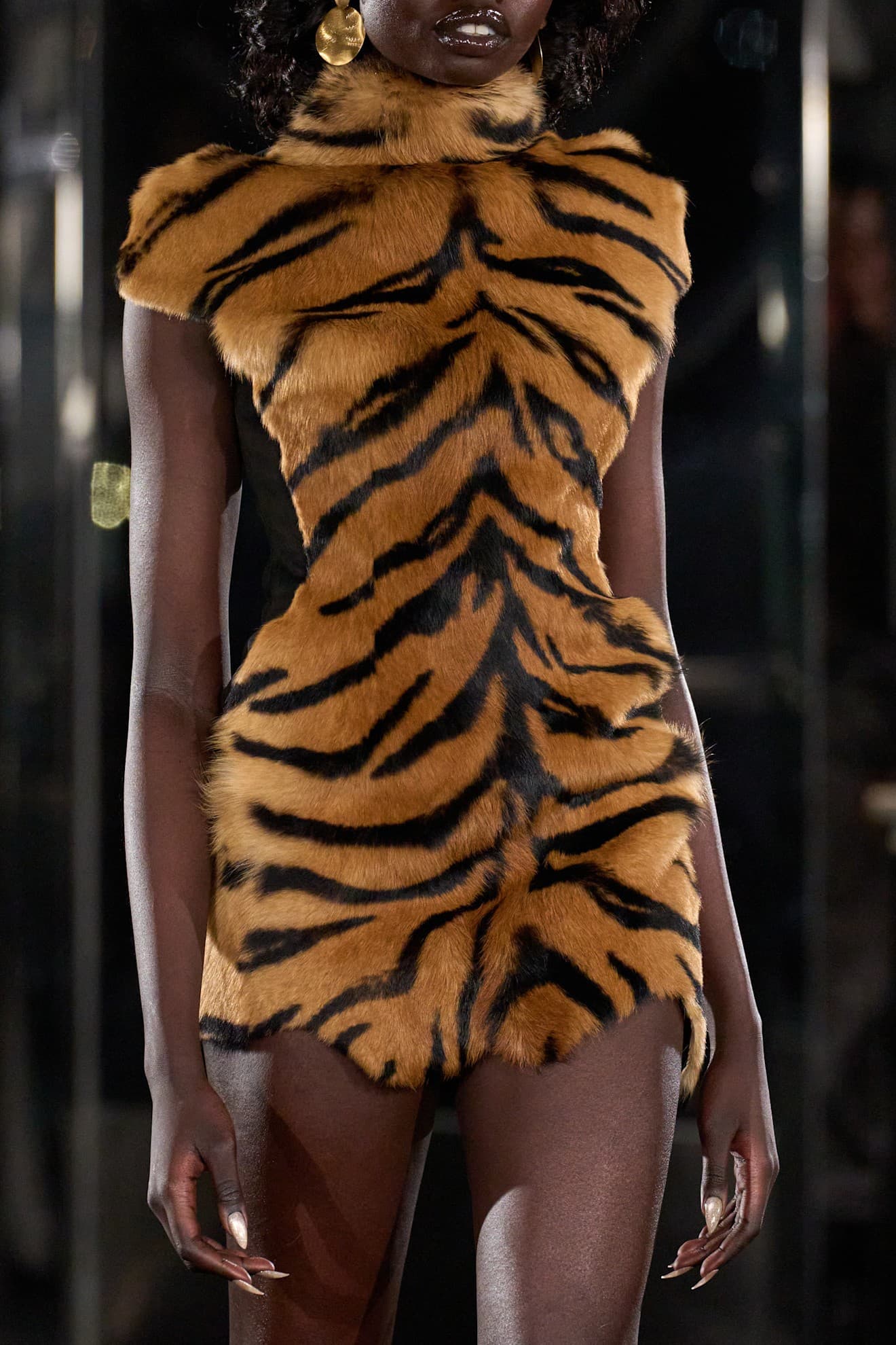 If this fashion month has taught us anything at all, it's that animal print is the trend that keeps on giving—and perhaps the one trend that can reinvent itself over and over again without feeling tired or repetitive. Animal prints and furs clashed, complemented, and fully made outfits—all while adding a combined element of bold sex appeal, glamour, and fun, all while paying homage to fashion history. Animal furs were all over Kim Shui's boat runway show: tiger trimmed coats, leopard pencil skirts, and tiger mini dresses, to name just a few examples. The show was maximalism central in the best way possible and it felt like confidence and sexual liberation were in the air—and the prints being sent down the runway contributed to that.