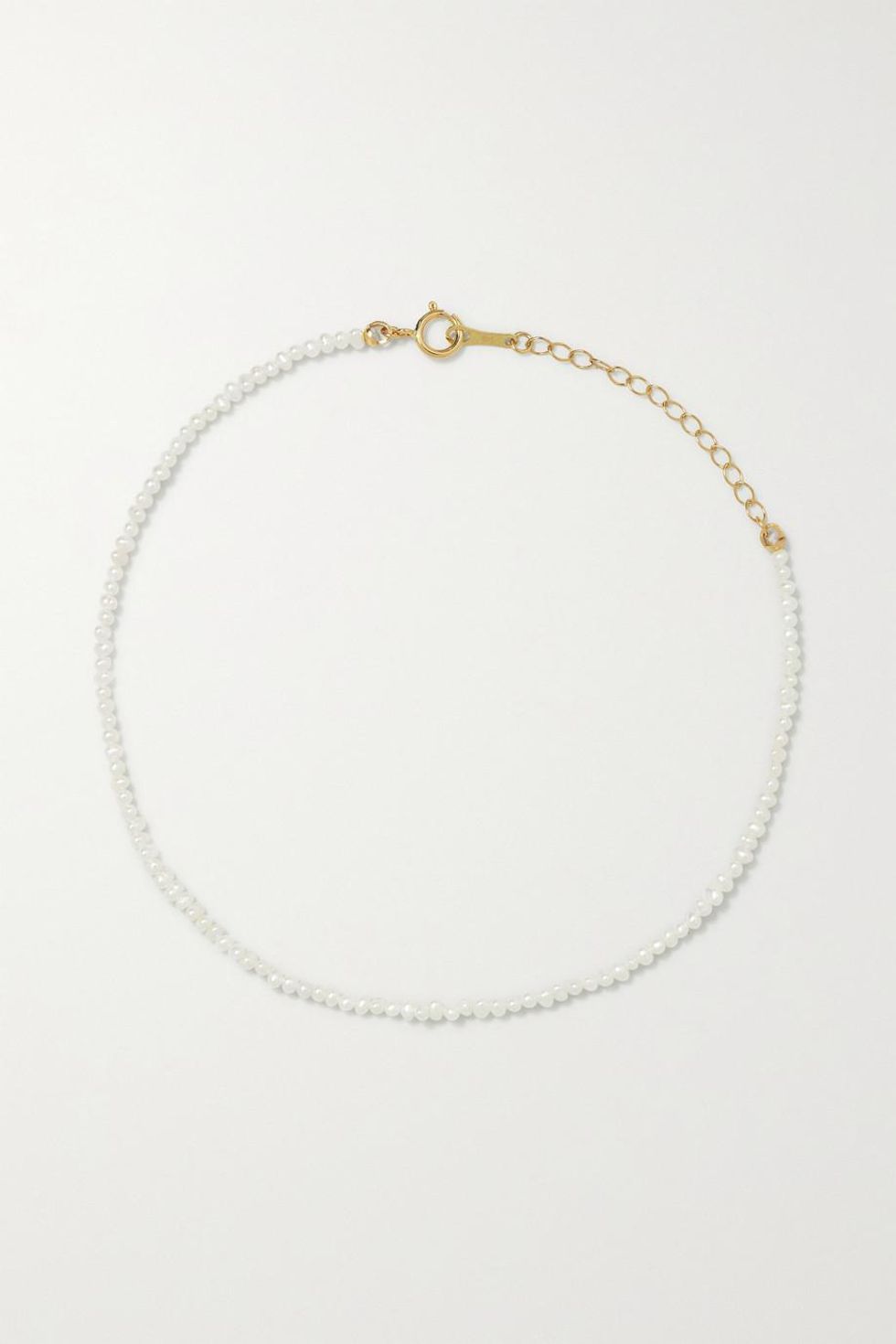 Much like a dainty necklace, the appeal of the anklet comes from its ability to be stylish and discreet. A slim slip of gold around the ankle with a delicate charm is the perfect way to highlight a strappy sandal. However, if subtlety is not your beat, there are a few other ways to wear. Larger chain link and flat curb chains are a bold addition to an anklet stack, while shell and pearl details feel of-the-moment and fresh.