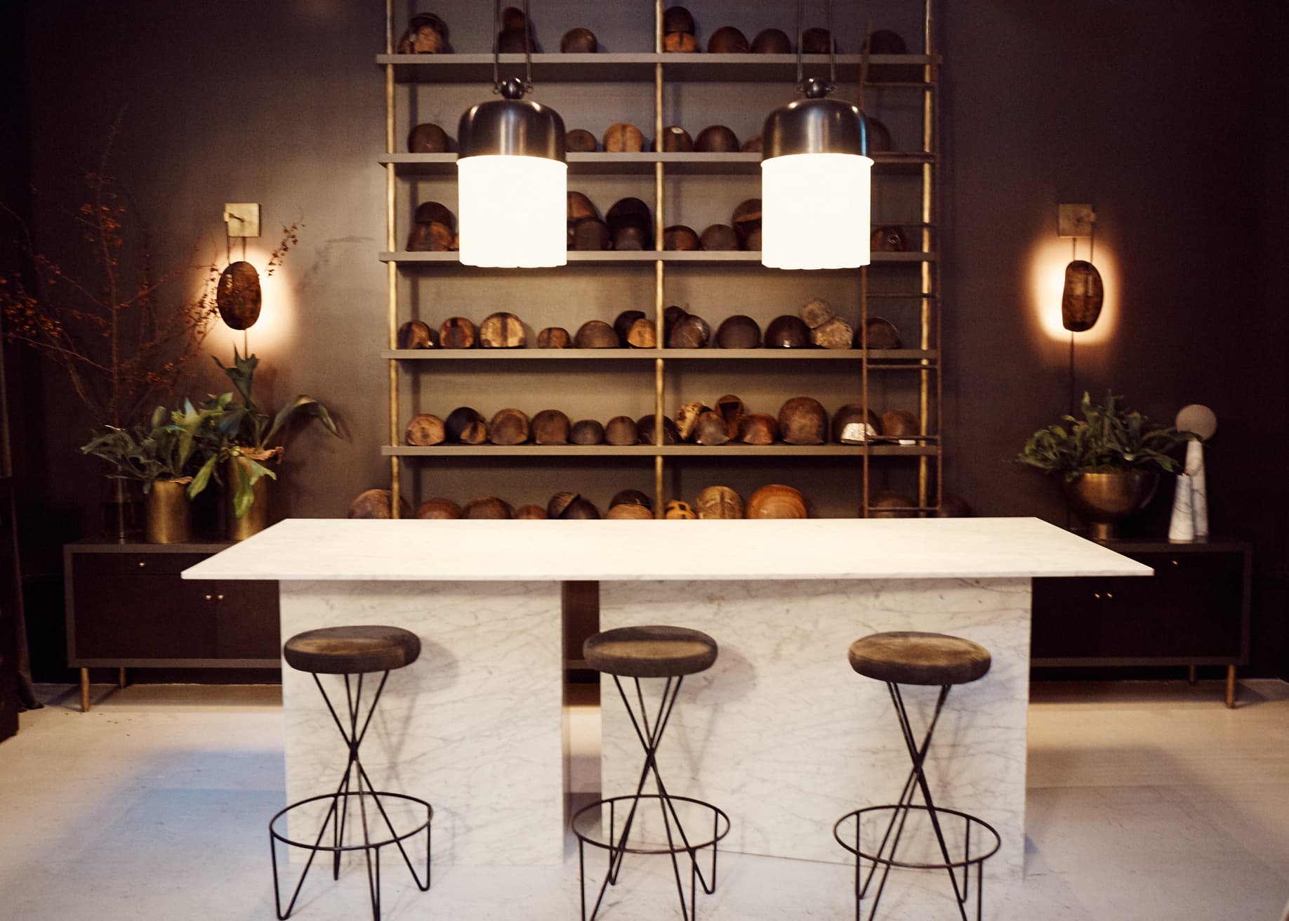 As Apparatus expands into furniture and sculptural objects, their aesthetic approach remains the same: playing off the emotional response people have to decor and space. The twosome consider the whole picture, rather than just key elements. Everything they touch turns to gold…or brass, copper, leather, horsehair, marble, cast crystal, and beyond. They playfully experiment with imperfect organic materials, which helps distinguish them from other emerging interior designers. When we got an invitation to visit their studio/showroom/office, we immediately packed a bag and were ready to move in. If you ever wondered what it feels like to go on a midday trip to heaven and back, we welcome you to take a closer look at Apparatus Studio.