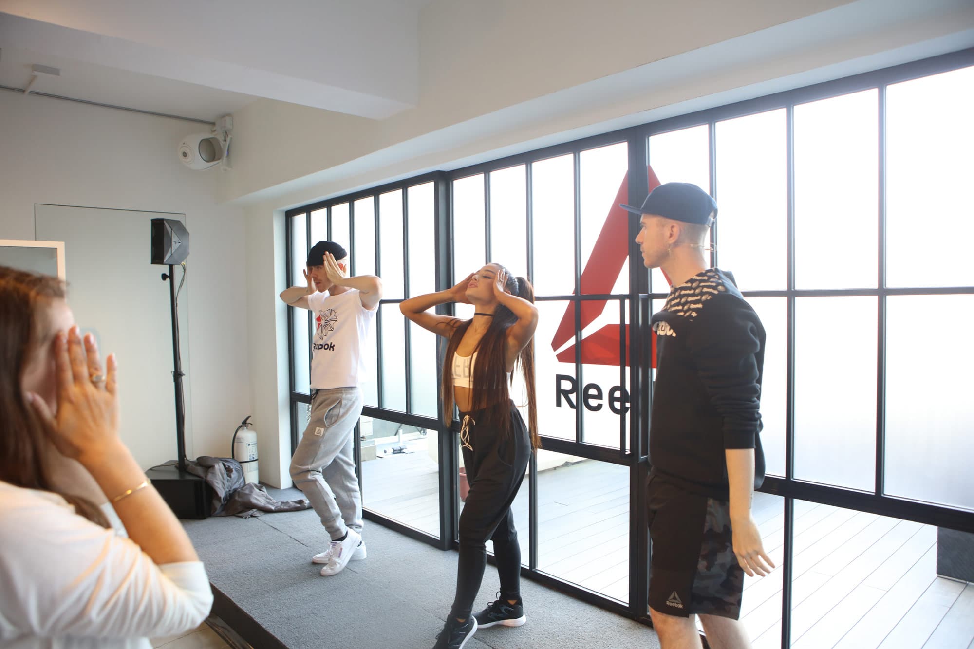 “Want to fly to Hong Kong in three days to have a dance lesson with Ariana Grande?” was not an email I was expecting to pop up in my inbox late on a Thursday afternoon. It was an invite to celebrate Grande’s historic partnership with Reebok, a full day with the artist recreating what a typical 24 hours is like for her (minus the 20+ tailgating journalists, of course). “I don’t do a lot of things like this,” Grande confessed almost immediately as we shuffled into what I suspect was a completely barren, concrete room only hours prior. Now it was lined with floor-to-ceiling mirrors scribed, in what looked like lipstick, with words of encouragement, and a DJ booth ready for the dance lesson we were about to take part in with Grande and her creative directors, Brian and Scott Nicholson (who, btw, are so much fun). But it’s true; Grande, albeit one of the most influential artists (if we’re counting sheer Instagram followers, only second to Selena Gomez), hasn’t relied on building clout by churning out interviews—can you remember the last time she sat down for one?—but from the connection she has nurtured with her fans.