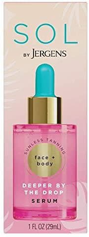 Step 2: Face. "I start by prepping the skin by mixing three to six drops of SOL by Jergens Deeper By the Drop into the La Mer Crème and then apply evenly all over the face and neck. I LOVE the SOL serum because you are able to customize your color to your liking. More drops mean more color. No streaking, never orange. Definitely my new obsession!