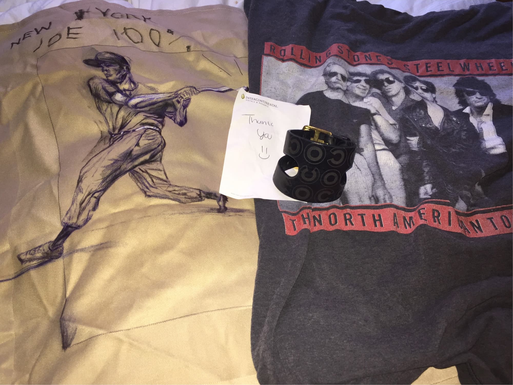 “6 AM alarm… Half-dead with circles under my eyes, I pull on black high-waisted American Apparel zipper-ankle skinnies, a size XL paper-thin faded black 1984 Rolling Stones t-shirt, and throw a vintage military button-down on. I [go to the lobby Starbucks for a] Venti flat white—[I’m a] no-eye-contact zombie and straight back to room 2323.”