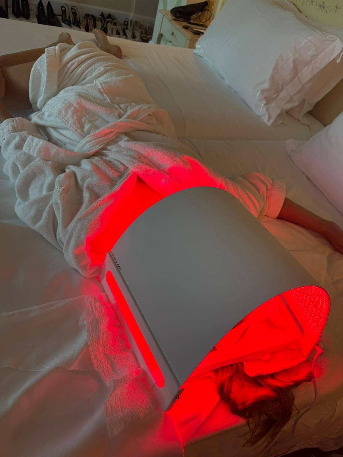AH: " When I enter their room I am first looking for the best place to set up. Outlets, where they will lay down, surfaces for putting product; that kind of stuff. When I find my work station, setup can take less than 10 minutes. I make sure they are comfortable in their spot and usually reconfirm what time hair and makeup are entering the room. The schedules are so tight day of, and you don’t want to stress out hair and makeup in any way as their jobs are already super stressful! Once that's sorted, I'll check in with the client about how they feel like their skin is feeling. Puffy? Dehydrated? Are they feeling sensitized? Have they used any actives or had any treatments super recently? Are there any allergies? I take a quick look at their skin to see what I'm seeing and then we begin."