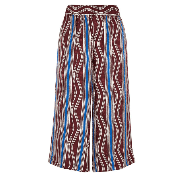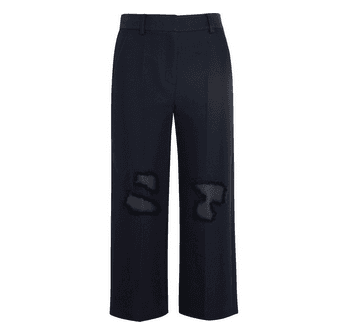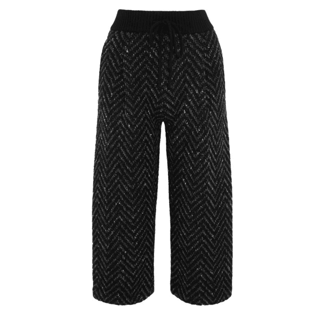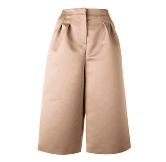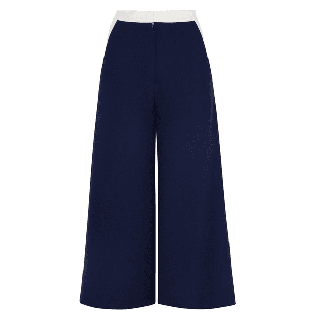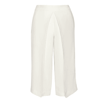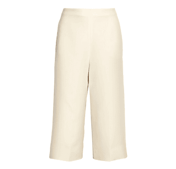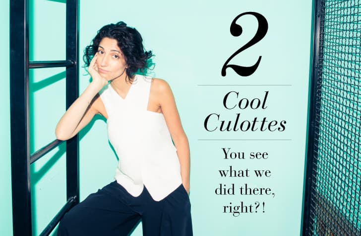 androgynous cousin. Cropped to the calf with an easy-breezy silhouette, the culotte trouser cinches at the waist and billows out into isosceles wide-legs—and yet somehow paired with a