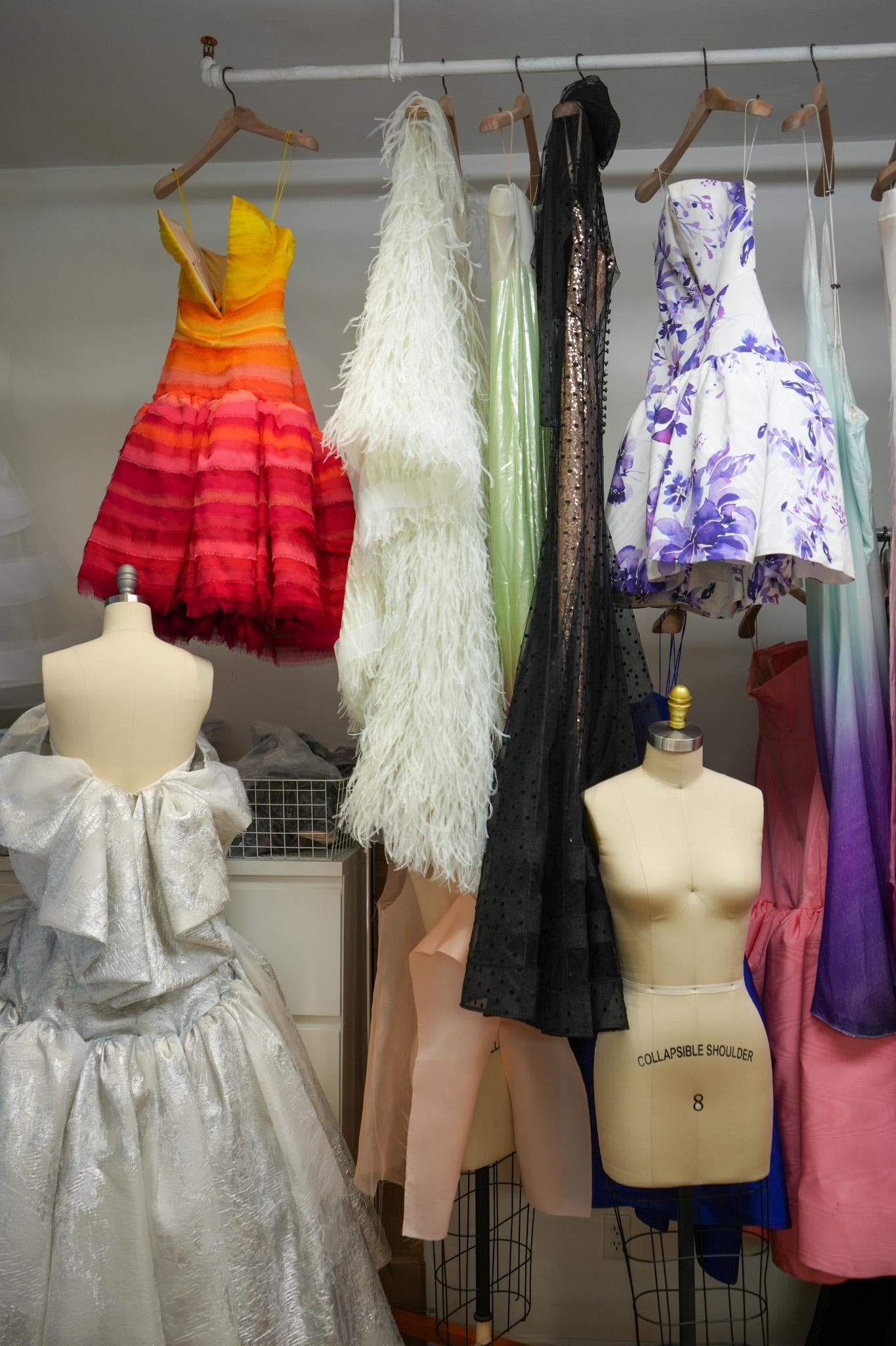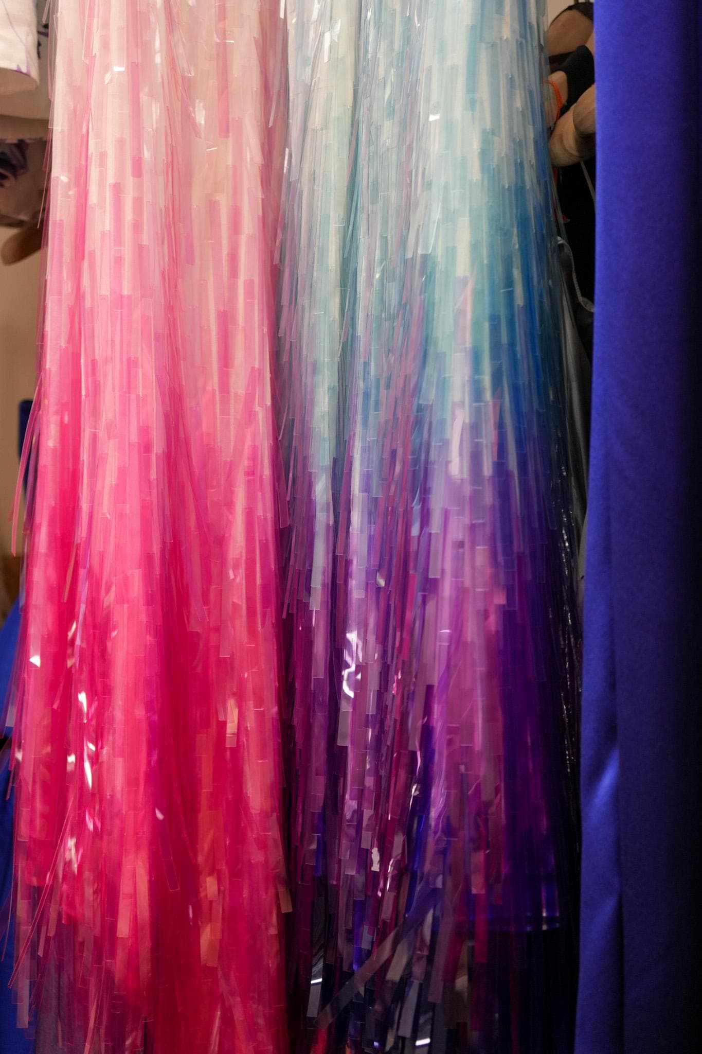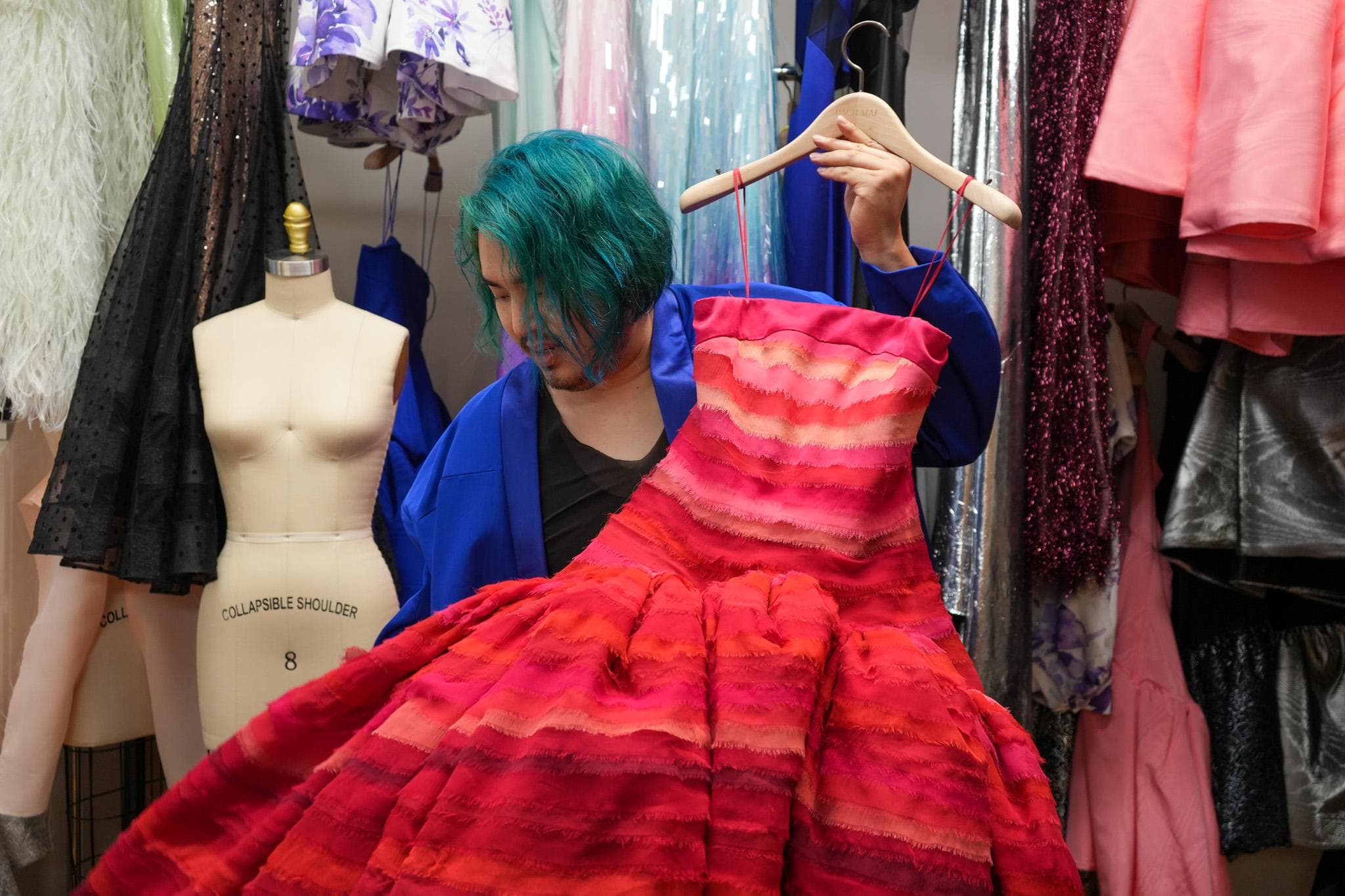Despite the confluence between the red carpet and the red curtain, Mai repeatedly assures me his designs are not to be thought of as costumes. But they’re not simply clothing either. They’re fashion. “Fashion exists in this very special space where it's clothing that also has to have a connection to the zeitgeist or some sort of cultural significance or relevance.” But his gowns can’t be costumes because they’re “meant for someone to wear and live their lives in.” Upon a second glance at the extravagant sartorial artistry surrounding us, he adds, “Maybe not always super easily.”