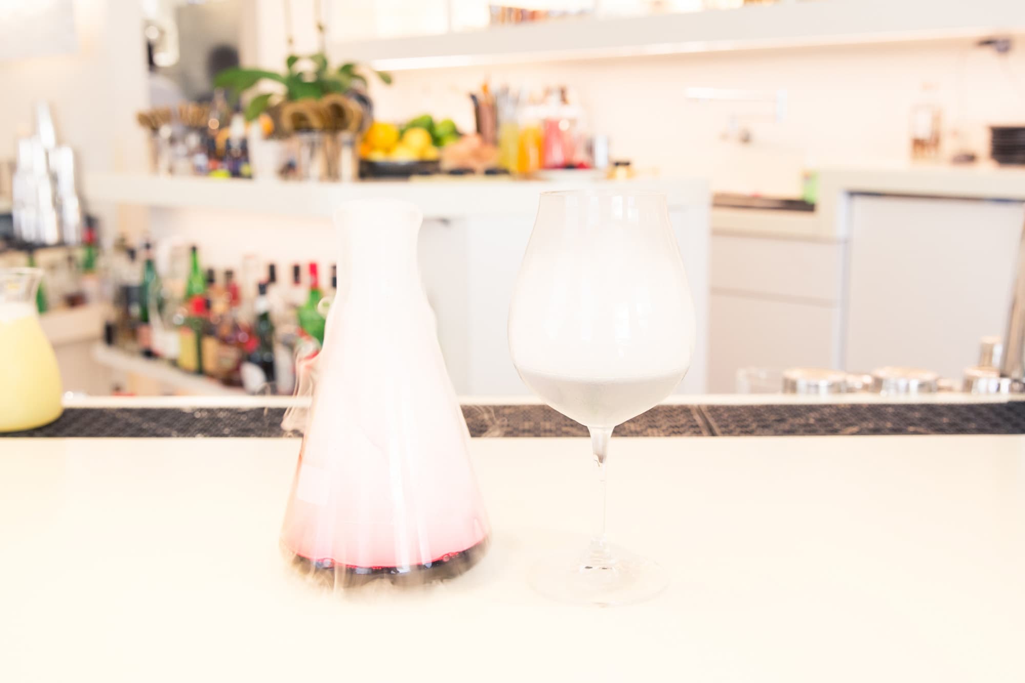 4. Pour cloud over the cocktail. DO NOT POUR LIQUID INTO THE COCKTAIL.