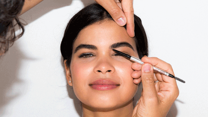 For Lauren, it was about filling strategically. “We wanted to tweeze away the hairs that were causing a distraction,” says Bailey. “Your natural brow thickness is where the coarser hairs are, and the finer hairs are the ones I typically like to clean up. I also like to trim the brows, but I recommend going to a pro. It’s like a bang trim: You think you can do it yourself, but it never works out.” Sigh, this is true.