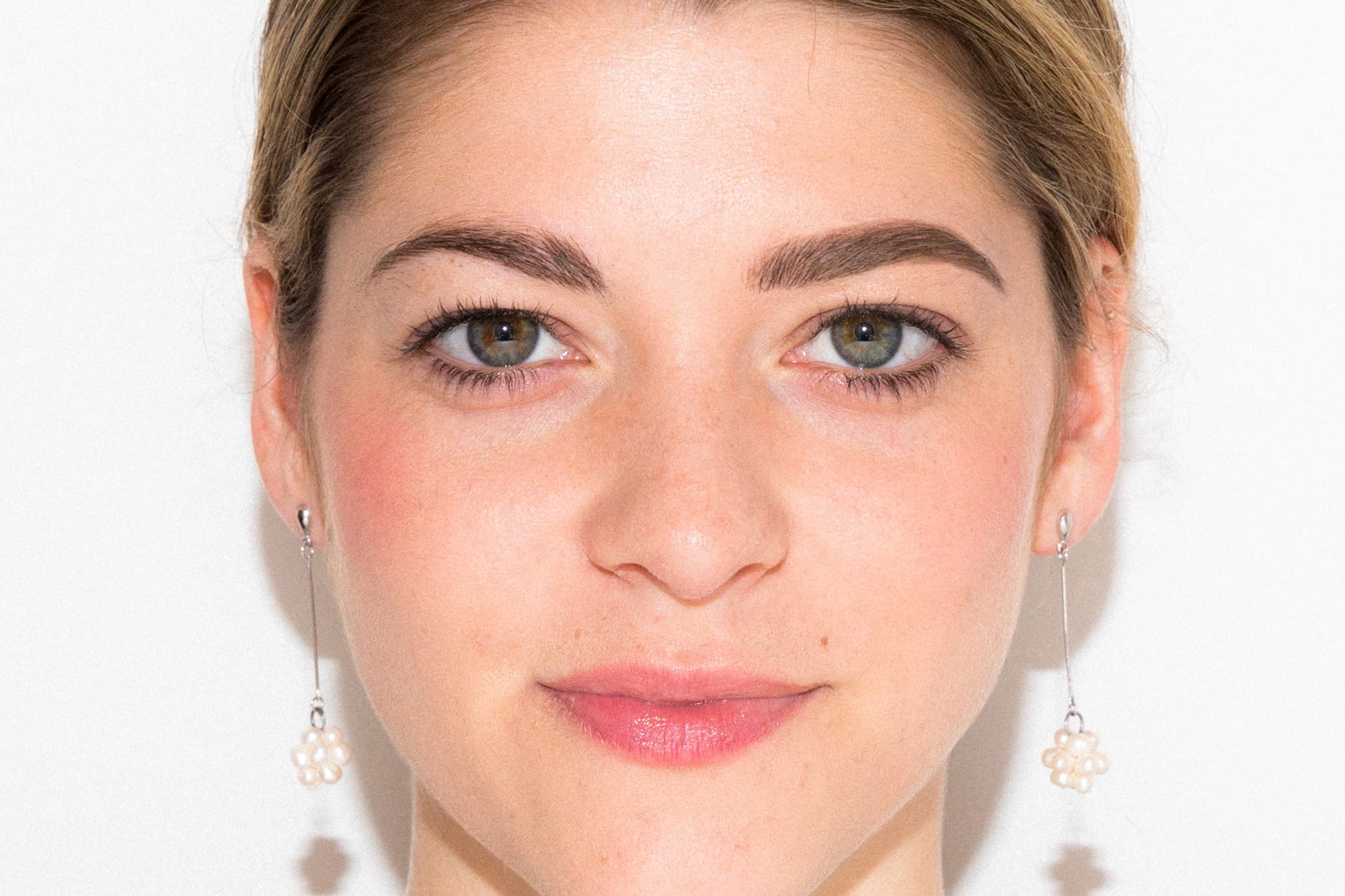 For Maddy, it was about evening out the shape. “There was a dramatic taper, so I wanted to take the weight off of the front so it becomes a bit more gradual,” says Bailey. “If we think about it, there’s nothing really hard or harsh to the face, so we want to keep the brows fluid and kind of curved.” Then it’s a matter of balancing the thickness between the two. And because Maddy’s brow hair is darker than her blonde head hair, Bailey starts with a lighter brow powder on the base, “wiggling” it onto the skin under the brows, and using a darker pencil or micro-liner that actually matches her brow hairs themselves to add a little texture, leaving spaces between each stroke.