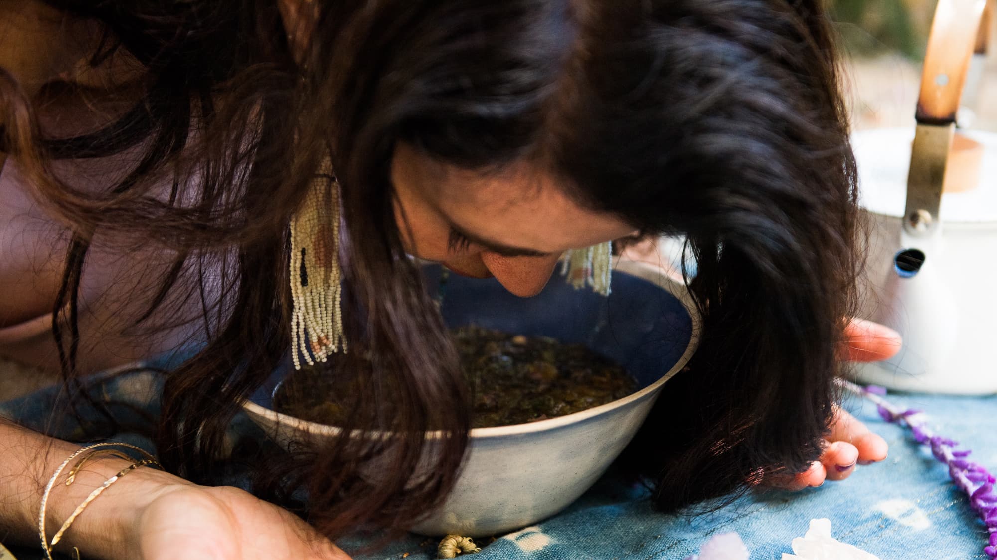 ) as it helps to open the pores. To make the experience even more enjoyable, she recommends using your favorite fresh herbs, like eucalyptus, rosemary, and mint (or a few drops of