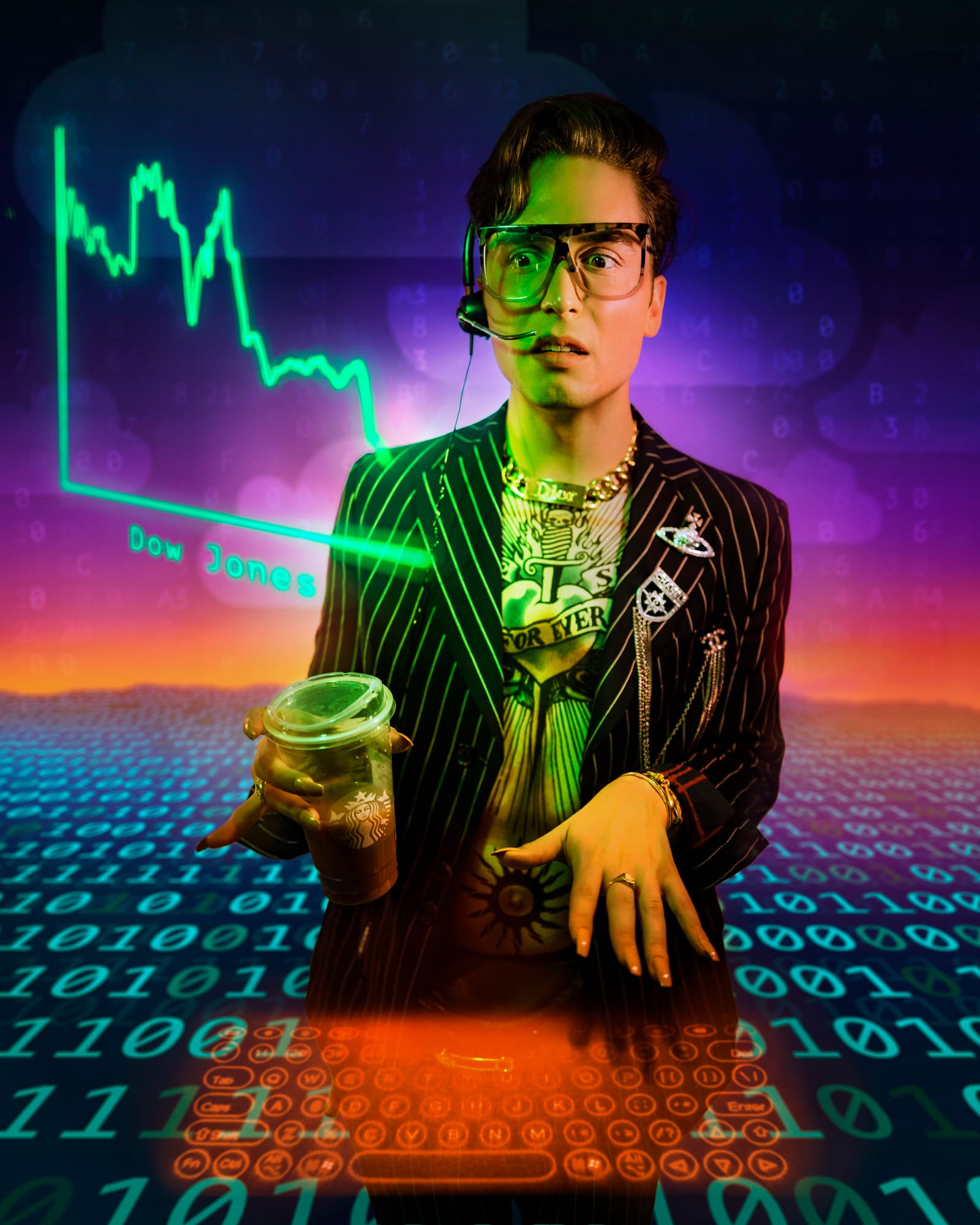 Despite our renewed proximity, the current climate has dictated we convene in cyberspace. The context of our reunion is on-brand for both Benny and Benito: The internet is their comfort zone. Although today, Skinner’s Wi-Fi is on the fritz. This is, admittedly, a little ironic, considering the film-school graduate’s career was born of lightning-speed connection with the worldwide web—uncovering an audience online before he reached the set or stage. Nonetheless, the discovery didn’t come easily. The Idaho native knew that to birth Benny Drama, he must embrace his own sexuality, and was only willing to do so with the utmost trepidation. With encouragement from his partner, Benito Skinner emerged from the proverbial closet and landed in public view as Drama. The Instagram phenom has since become the purest manifestation of queer culture—which he palatably parodies for our viewing pleasure.