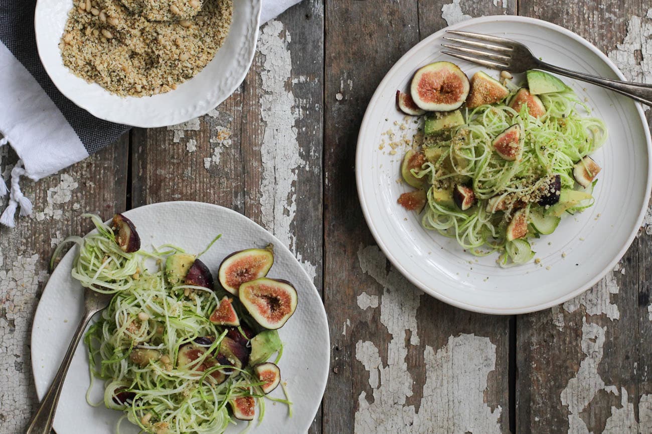 with Hemp Seed Crumble and 3 ounces of the protein of your choice. OR take a large zucchini and shred with a food processor, a grater, or using a mandolin to create zucchini ribbons to use as 'pasta'. Top with fresh tomatoes, basil, and 3oz. protein of your choice.