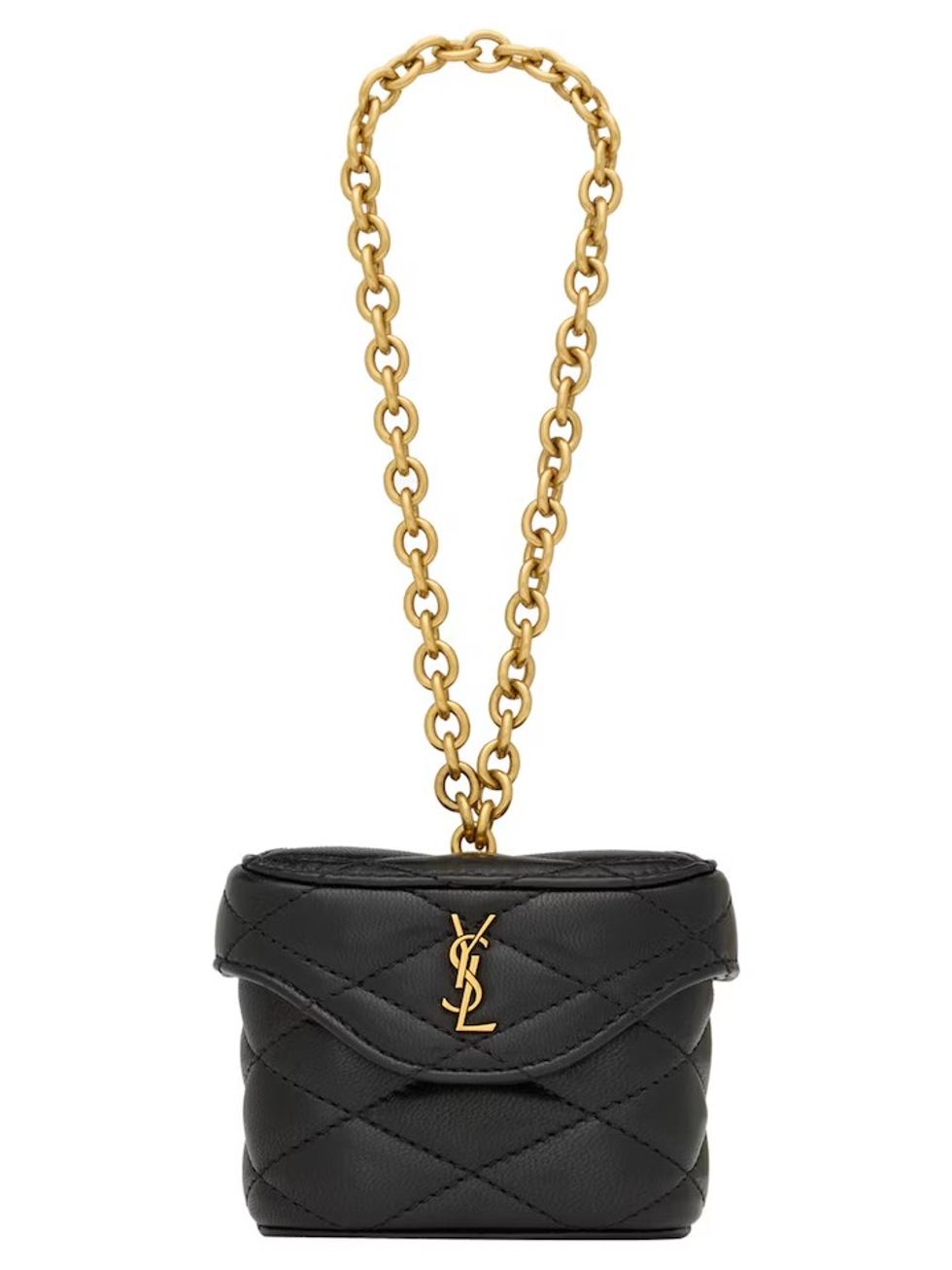 A Saint Laurent June bag is hard to miss, even when it's charm-sized. We love the diamond quilting throughout—a key staple of the brand. Pop a lipstick in and you’re good to go.