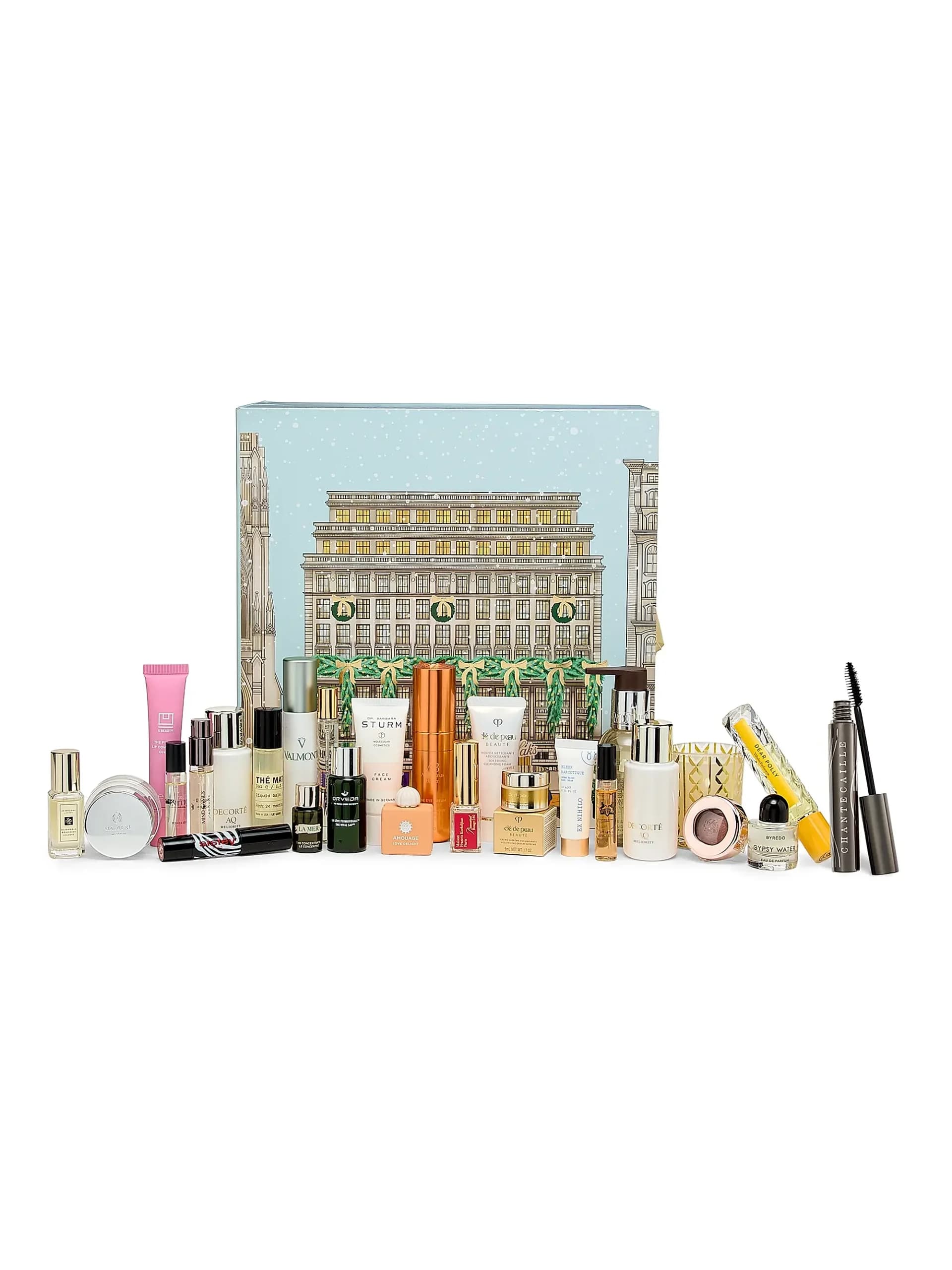 This 24-day advent calendar by Clarins features four full-sized hero products, as well as travel-friendly skincare, body-care, and makeup.