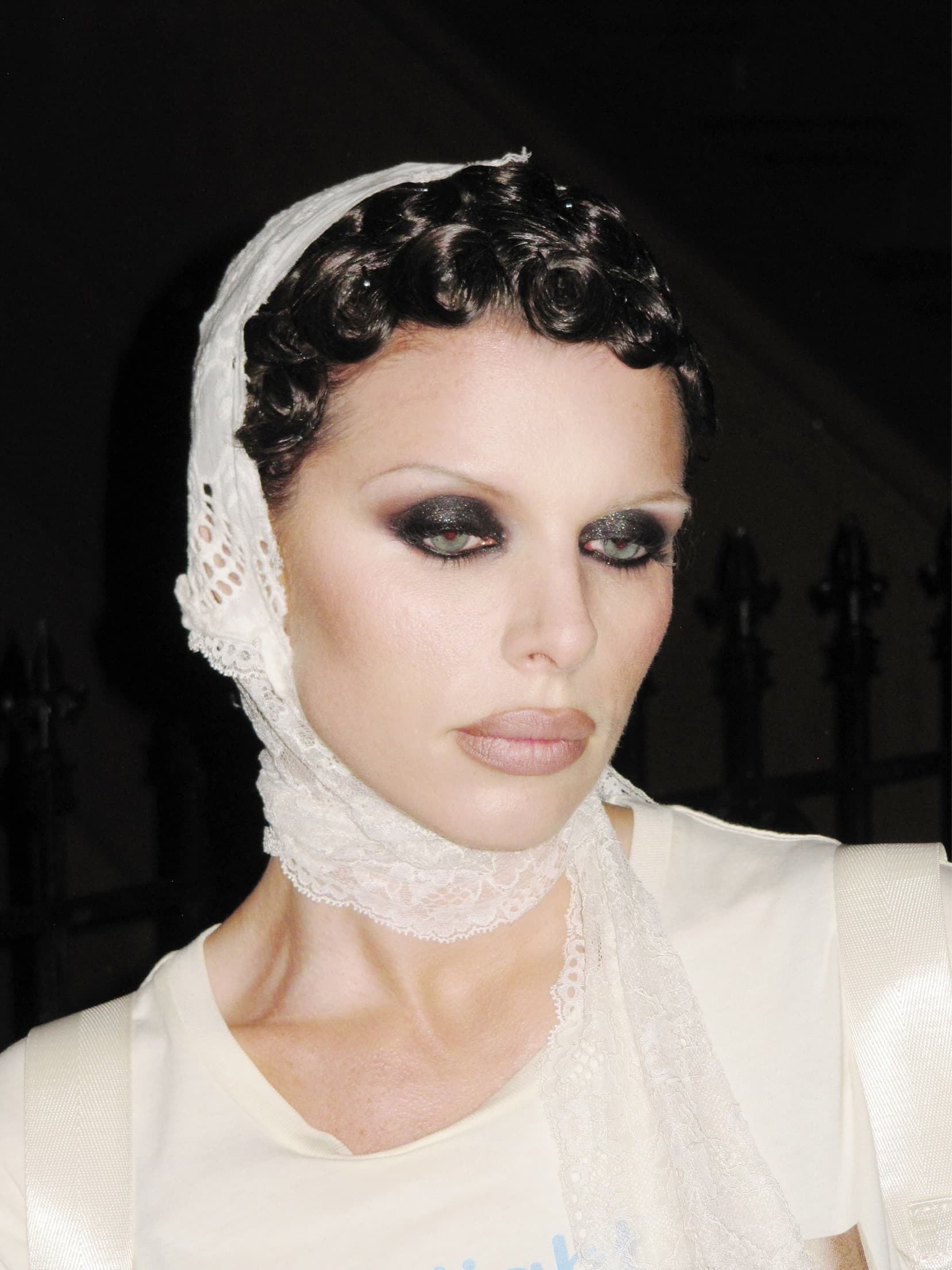 Alex Consani went with a smoky, red-toned eye look by YSL Beauté's global makeup artist Sam Visser—the perfect contrast against her light features and bleached eyebrows.