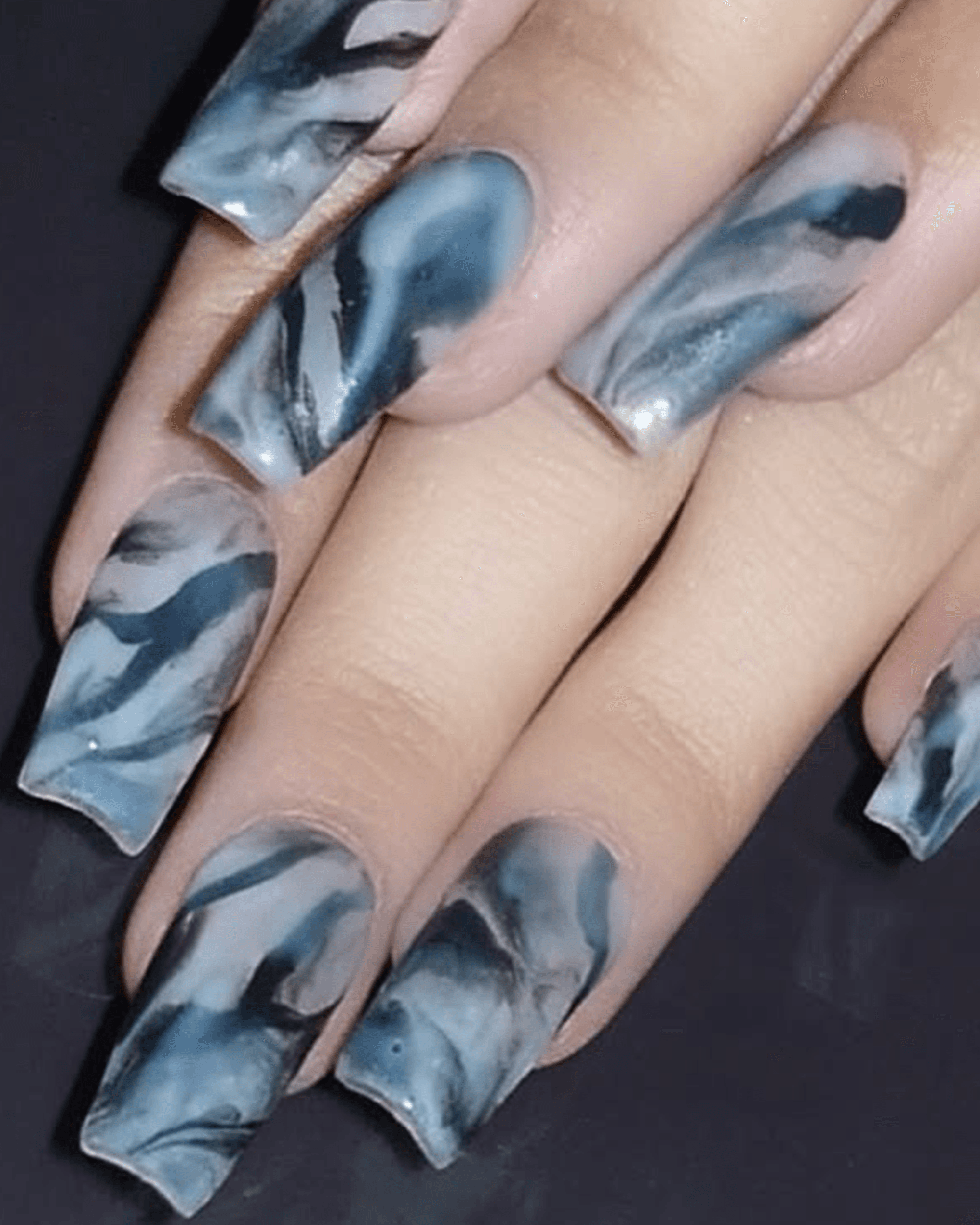 Nail artist Juan Alvear created multiple manicures for Lisa's "When I'm With You" music video featuring Tyla, but I was especially drawn to this blue-gray marbled design.