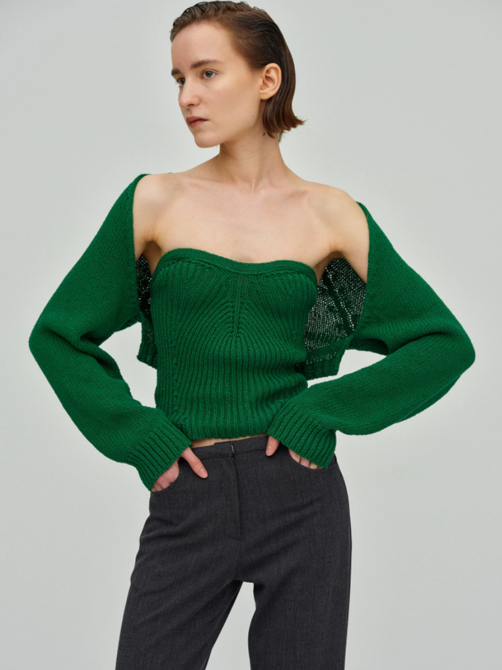 This combo is all about the elements. The bustier adds a sexy touch while the green gives it a boost of vibrance.