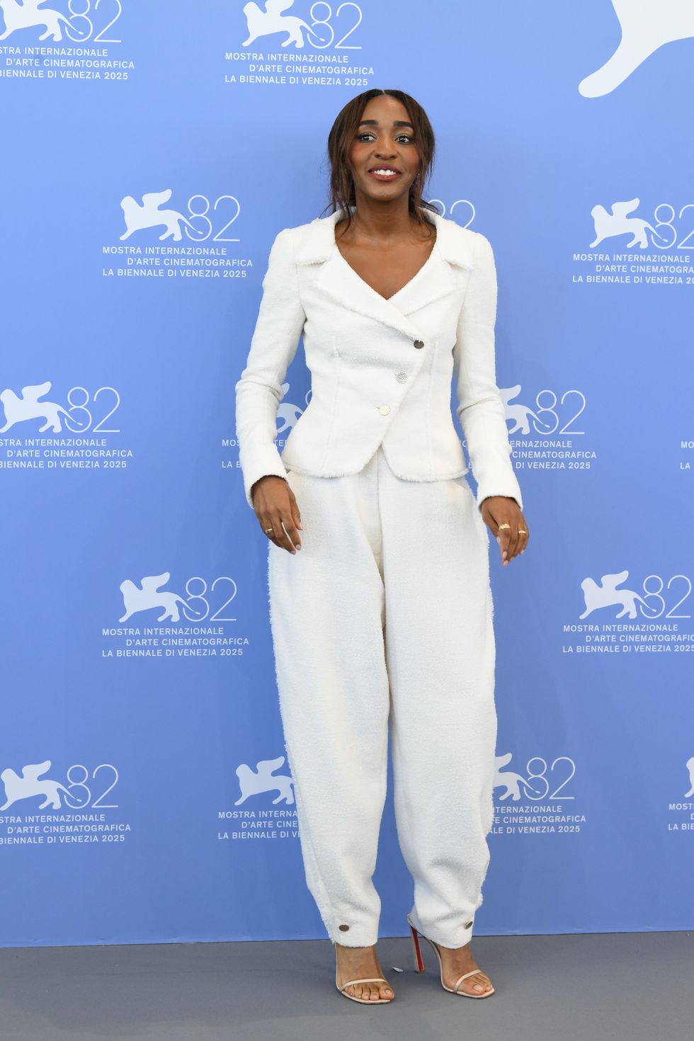At the Venice Film Festival, Ayo Edebiri made all of our Chanel dreams come true. She for a custom white Chanel pantsuit with asymmetric buttons, inspired by Karl Lagerfeld's Spring 1999 Couture collection.