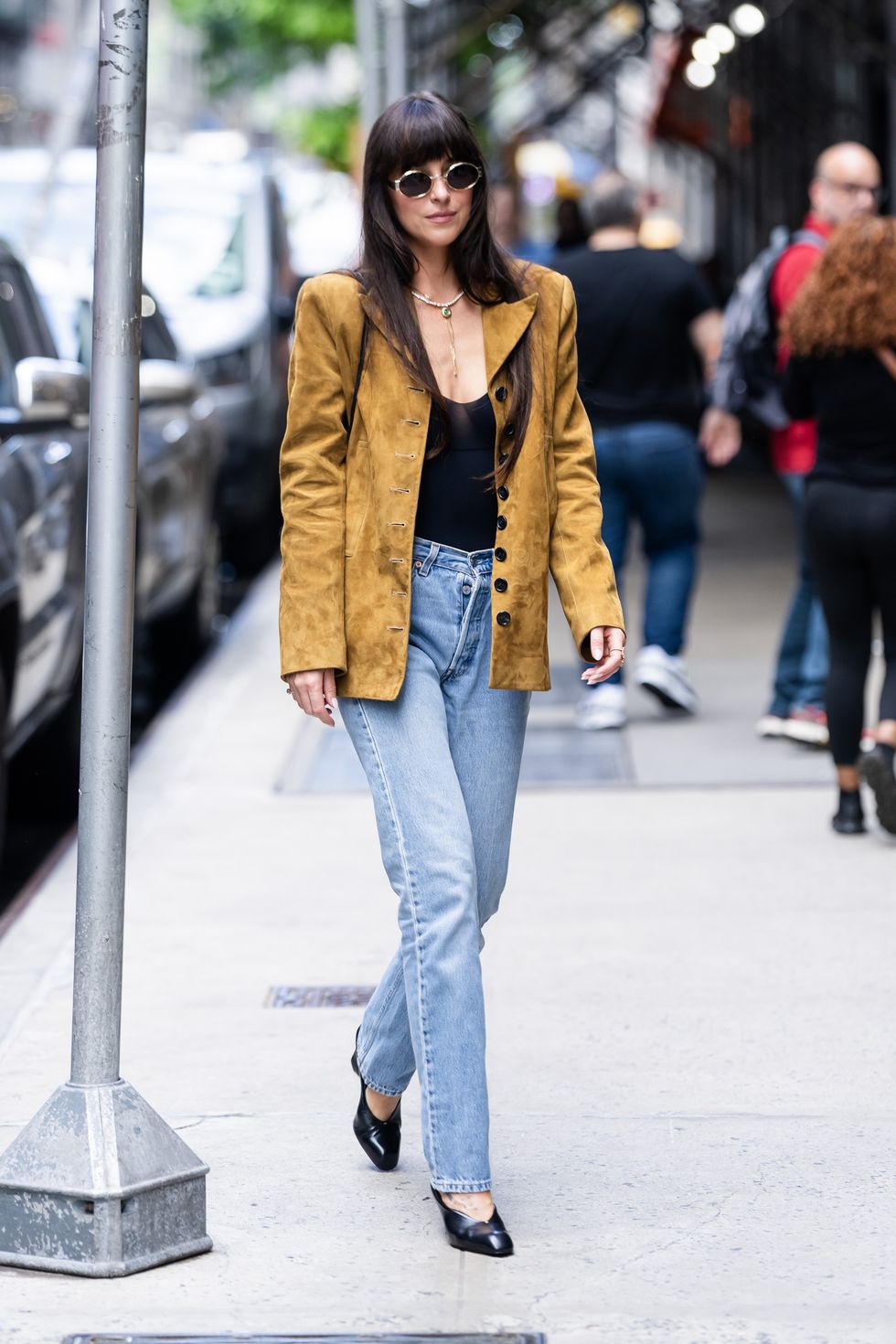 In New York City, Miley Cyrus continued on the press trail for her new album, ‘Something Beautiful,’ stepping out in a two-piece ensemble from The Row, and later in the week, a sheer gown and dark black sunglasses. Dakota Johnson, in town to promote her new A24 movie, Materialists, appeared on The Tonight Show With Jimmy Fallon in new season Ferragamo.