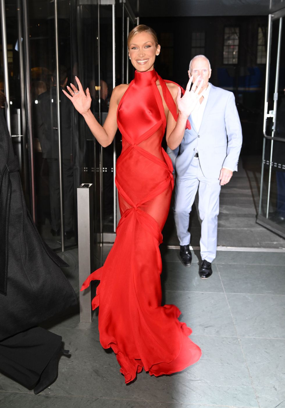 In celebration of her forthcoming acting debut, Bella Hadid was a vision in red in a Schiaparelli Fall 2025 couture gown for FX's "The Beauty" premiere at the Museum of Modern Art in New York City.