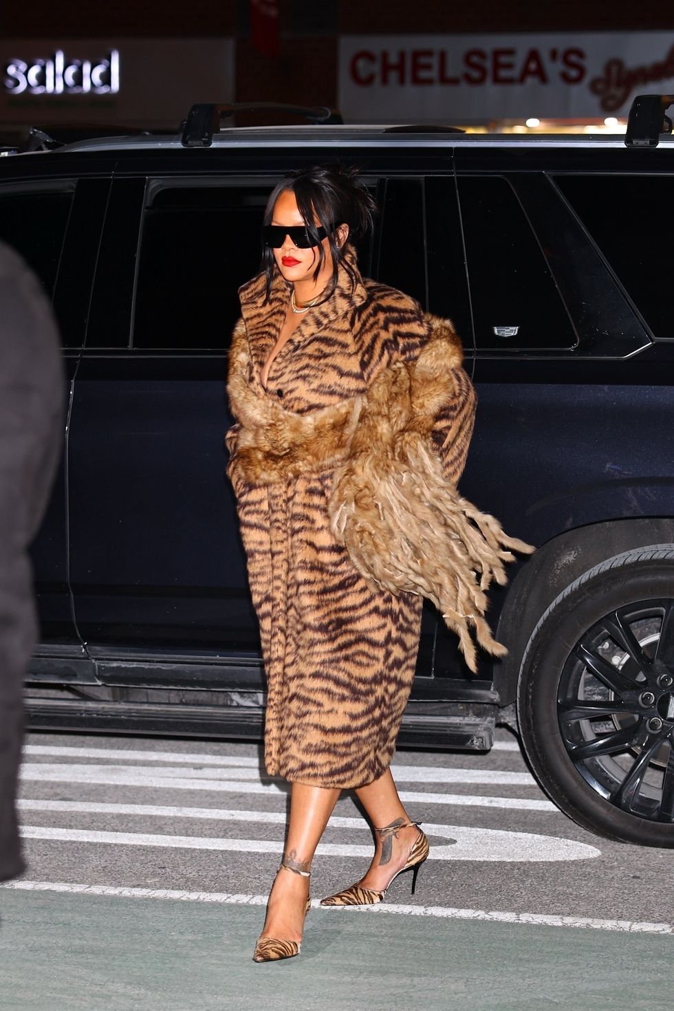Animal print will always be in style and Rihanna surely knows that. She threw on an animal print Alaïa coat, matching heels, and a fur stole wrapped around her like a belt. Oh, and did I mention that she went completely pant-less in the New York City chill?
