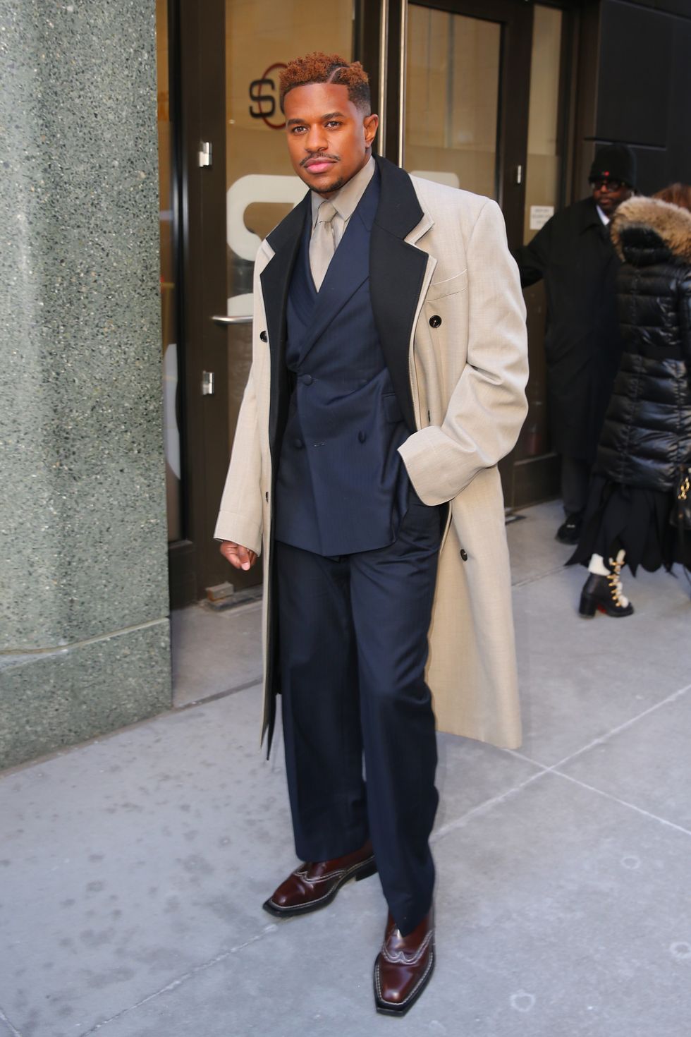 "The Beauty" star Jeremy Pope threw on a perfectly tailored suit, a to die for trench coat, and burgundy western-inspired shoes for a day of press in New York City.