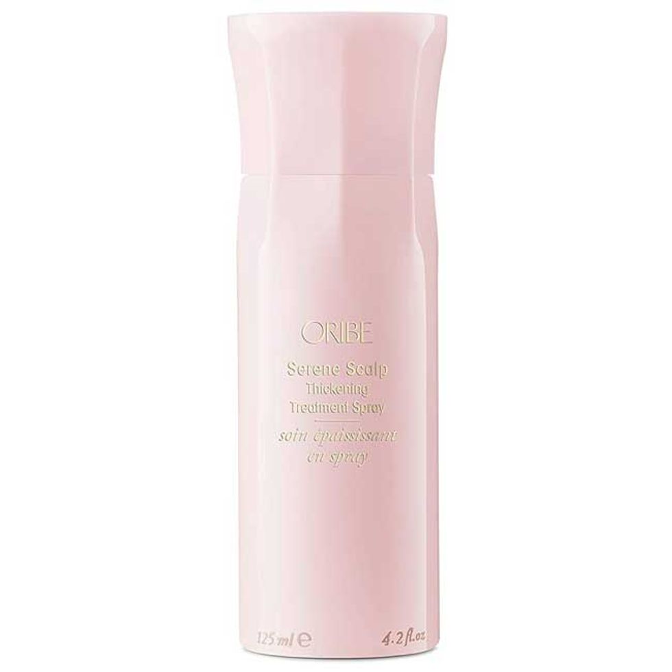 3. Oribe Serene Scalp Thickening Treatment Spray: I’m in the midst of growing out bangs (against my will—thank you, quarantine), so when I want to get the weird side-swept mess of hair out of my face, I have to pull them back into an extremely tight bun. That sort of tension puts a lot of pressure on your temples, where most women already experience thinning due to years of updos, protective styling, twirling your hair, et cetera. So after I get out of the shower, I spritz this thickening tonic on each temple to encourage hair growth and mask any patchiness.
