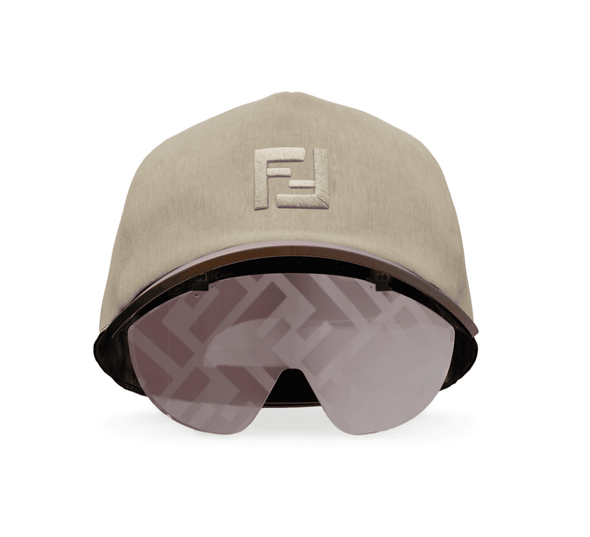 What's better than a standard hat? A hat with built-in sunglasses! This Fendi eyecap is the ultimate two-for-one.