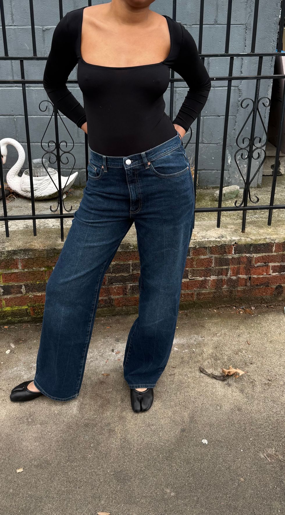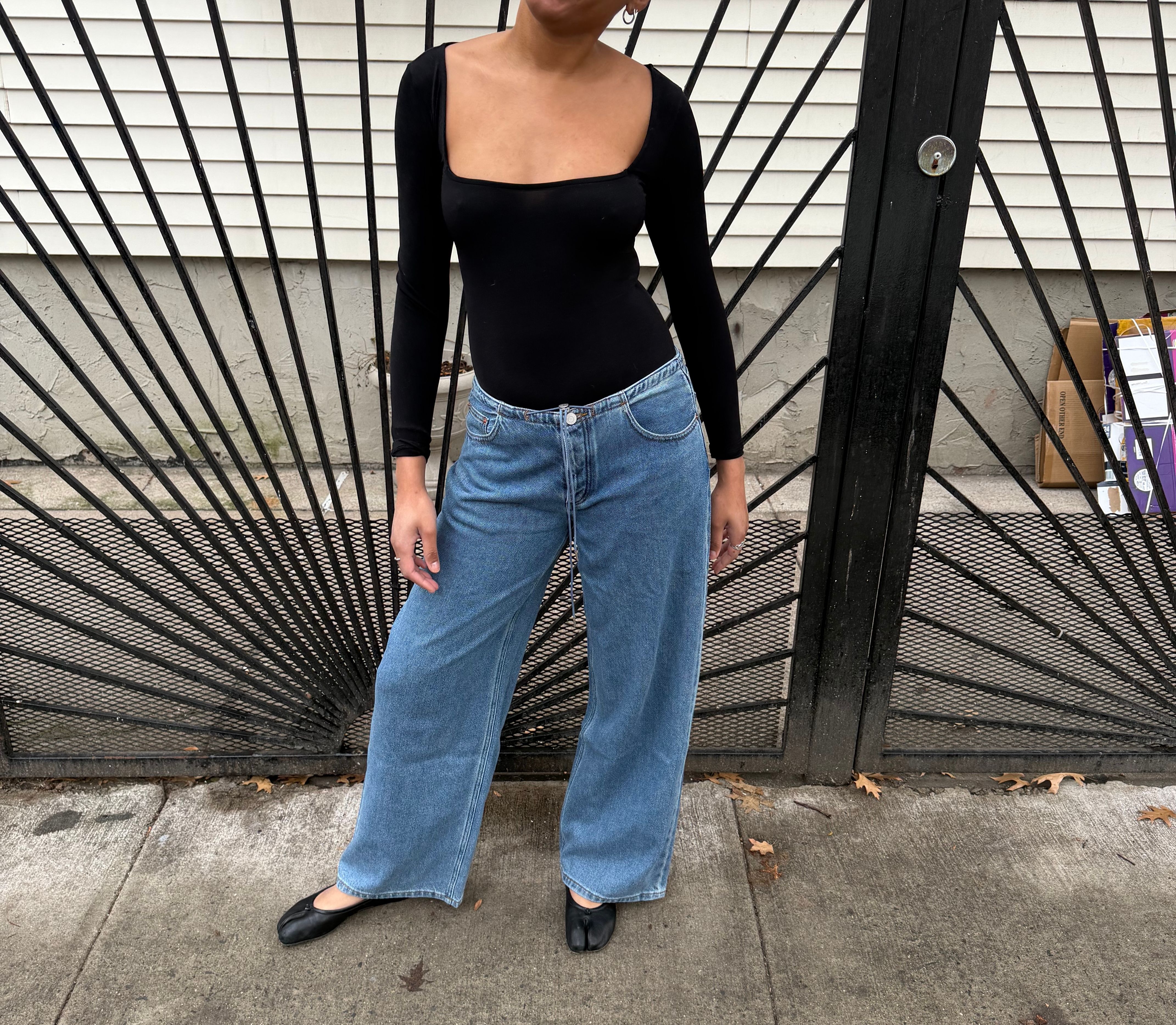 A pair so good that I already own them in multiple washes. These Reformation jeans are one of the more rigid pairs that I have tried, but they feel roomy enough that the rigidity doesn't feel too tough or restrictive—and this is coming from someone who needs jeans to be comfortable while all both sitting and standing, and need them to be able to move with me. They sit perfectly low waisted and have enough room to accommodate a bigger butt.