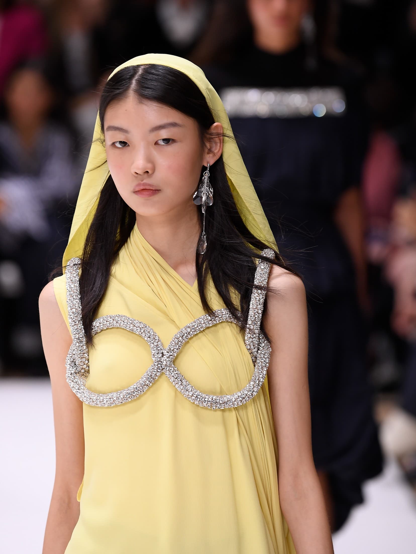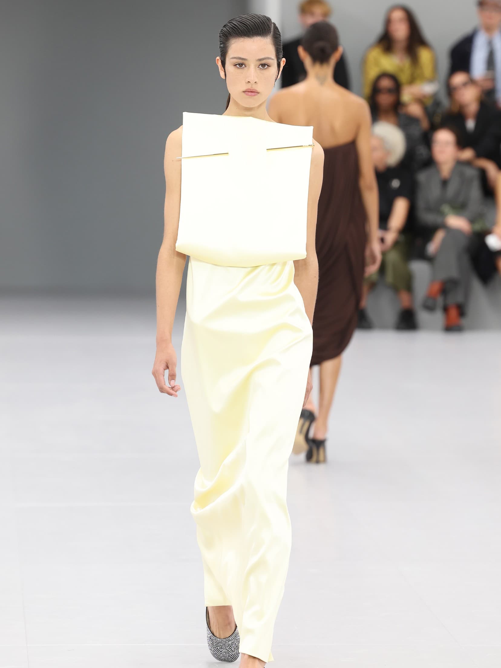 Pascal Le Segretain / Getty ImagesThis floor-length, butter yellow gown from Loewe’s Spring/Summer 2024 ready-to-wear collection featured a giant dressmaker pin pierced into the fabric near the décolletage, paying homage to the designer’s surrealist vision.