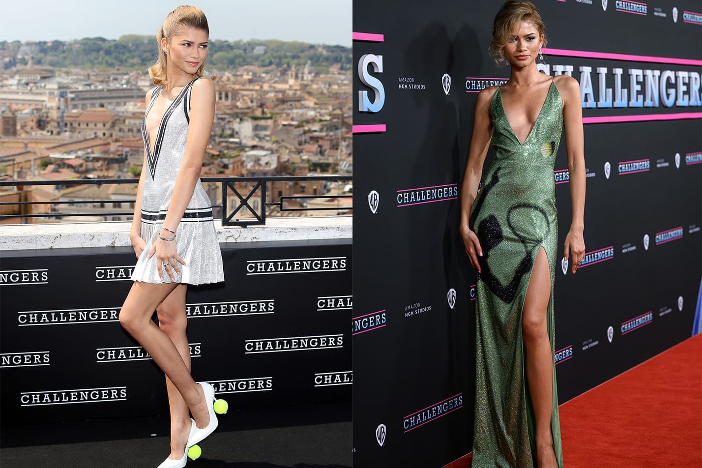 Daniele Venturelli /James Gourley / Getty ImagesOn the press tour for Challengers, Zendaya wore two custom Loewe looks complete with tennis ball heels and interpretive takes on the traditional tennis dress.