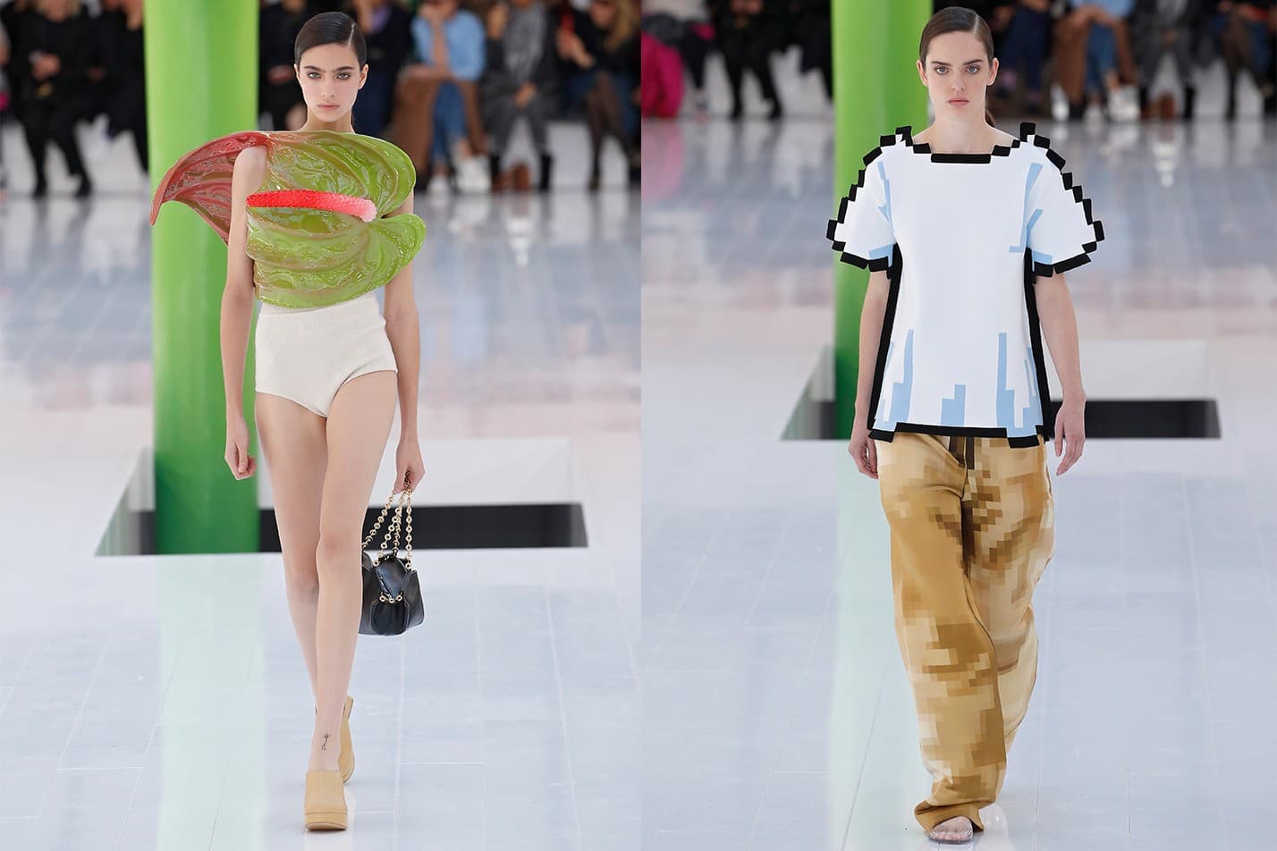 Estrop / Getty ImagesLoewe’s anthurium collection saw walking surrealism, with flora and fauna breastplates and heels, as well as pixelated pieces that blurred the lines of fashion and art.