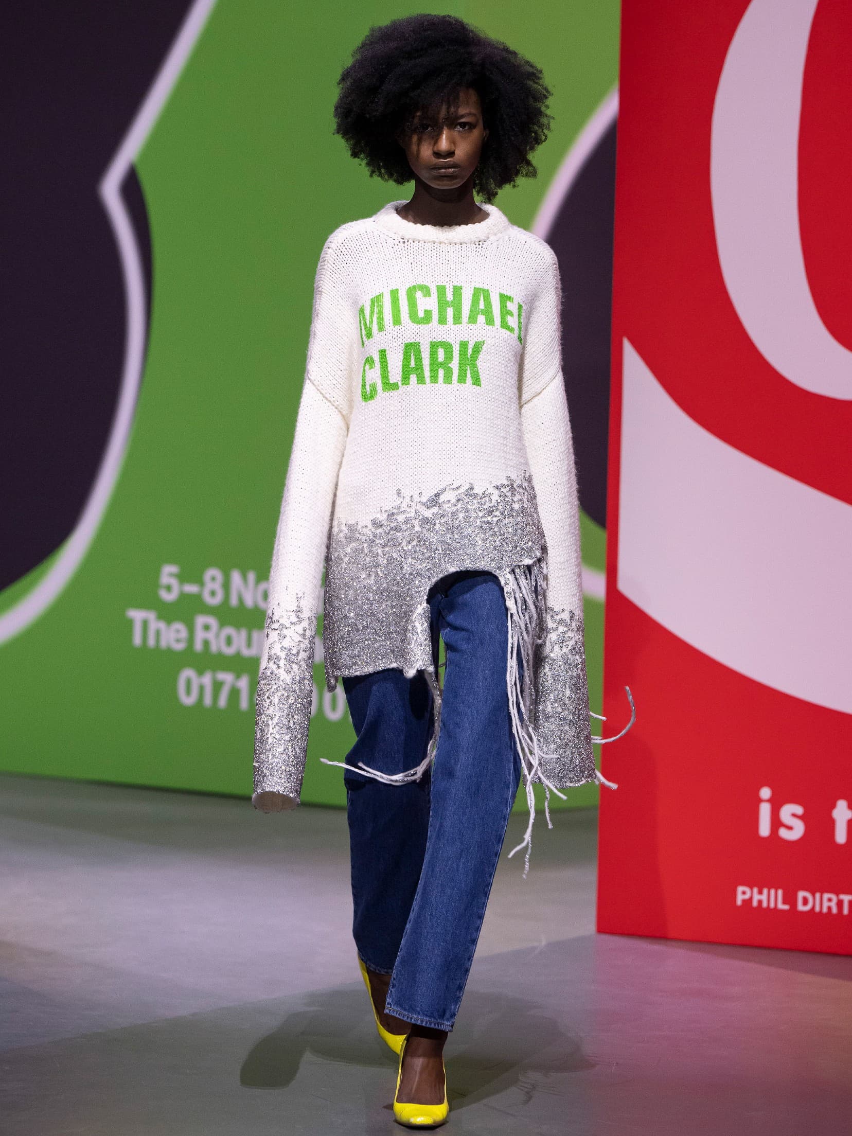 Victor Virgile / Getty ImagesIn 2023, Anderson’s JW Anderson collaborated with dancer and choreographer Michael Clark on an exclusive Fall/Winter 2023 collection highlighting British culture for London Fashion Week. There were bold graphics, rhinestone-embellished knits, exaggerated sleeves, check suiting and quippy placards along the tops that read, ‘WITCH,’ ‘DENTIST’ and more