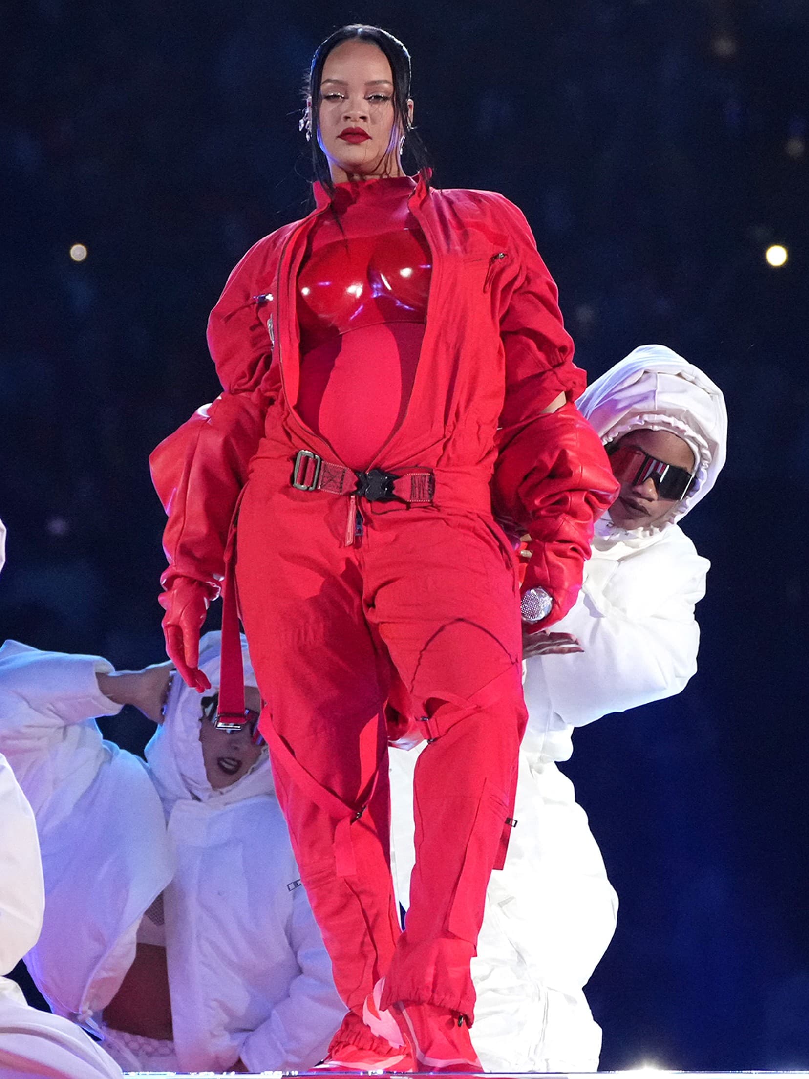Kevin Mazur / Getty ImagesRihanna wore a bright red, custom Loewe ensemble during her 2023 Super Bowl halftime performance, featuring Anderson’s signature balloon-like campy breastplate that complemented her pregnancy announcement.