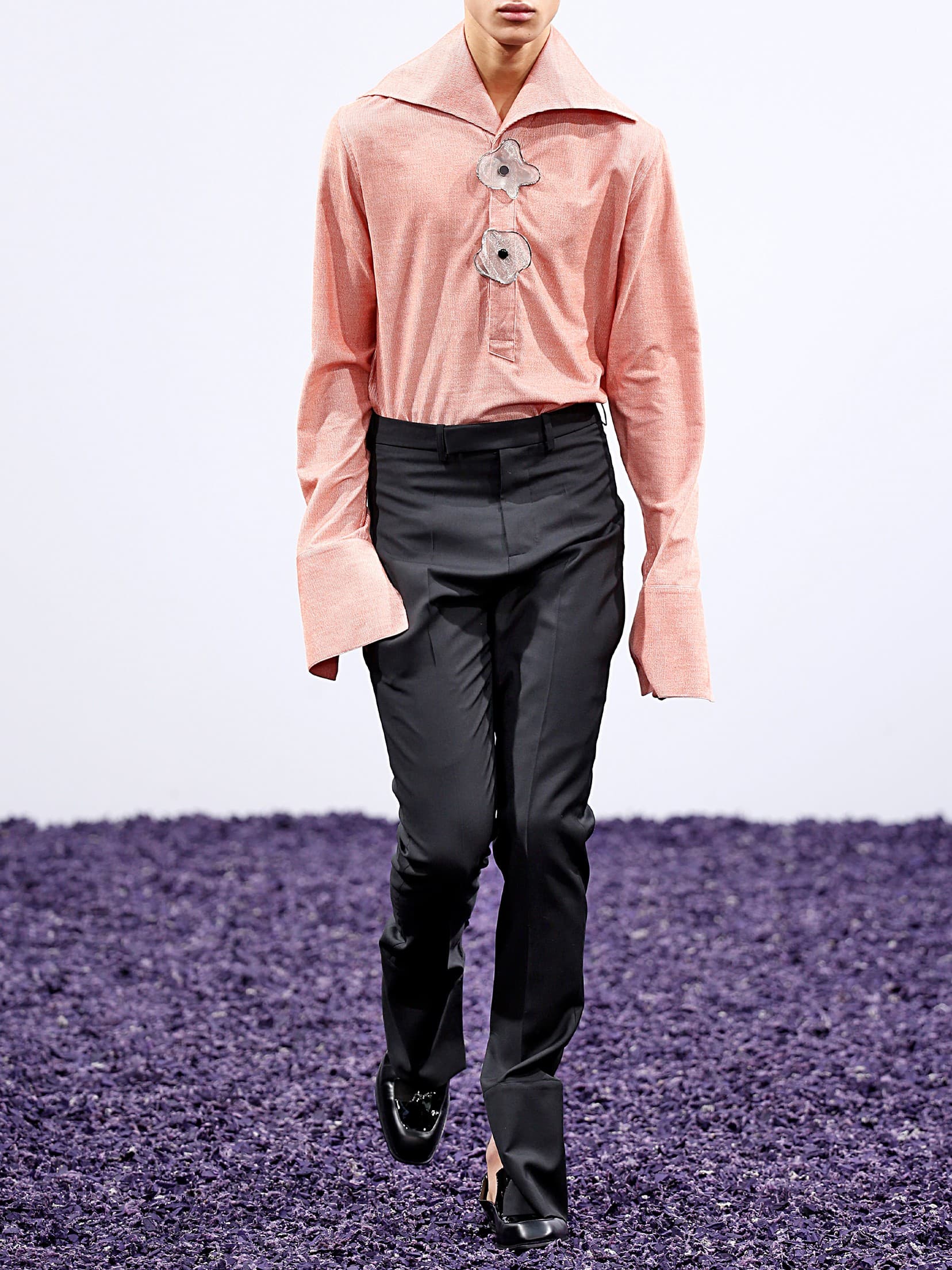 Over the years, Anderson has proved that he’s never one to shy away from boundary-pushing silhouettes, imagining experimental collections where nature came alive with pieces like his unforgettable JW Anderson pigeon clutch from his Fall 2022 menswear show, that Sarah Jessica Parker’s Carrie Bradshaw wore in the filming of And Just Like That…, along with Loewe’s grass garments in 2022 and anthurium breastplate blouses in 2023. All of which challenged the idea behind art as fashion and how it pertains to human relationships with earth. Beyond the shows, his designs left a distinct imprint on pop culture, from custom tennis core looks for Zendaya’s Challengers press tour to Rihanna’s instantly iconic Super Bowl performance ensemble.
