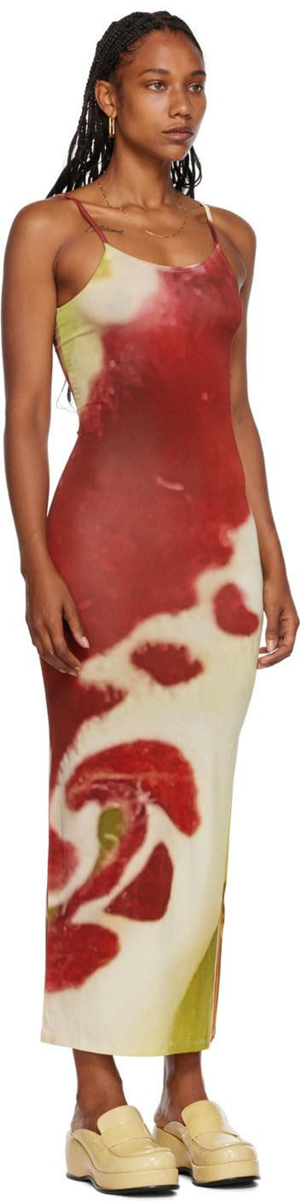 I am on record as a slip dress fanatic, so obviously, I have to include at least one on this list. This one by Paloma Wool has a stunning orchid print and is made from 95 percent viscose certified by the Forest Stewardship Council.