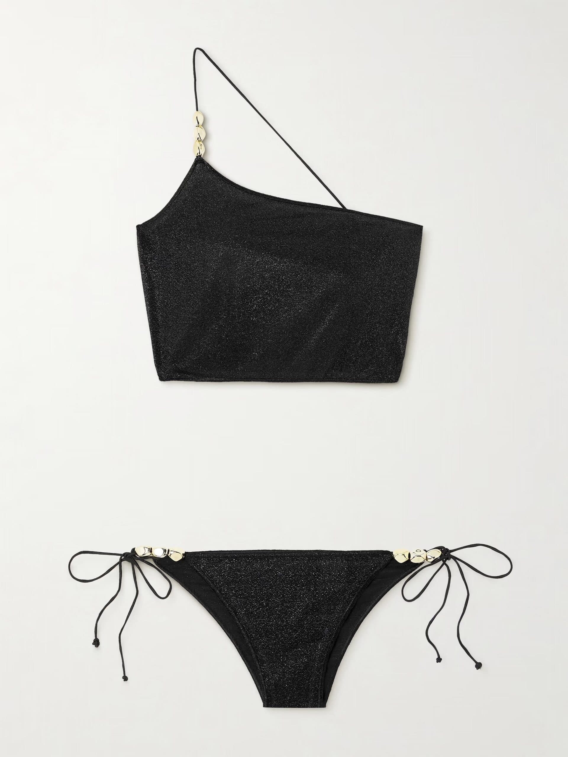 Oséree One-Shoulder Embellished Metallic Bikini