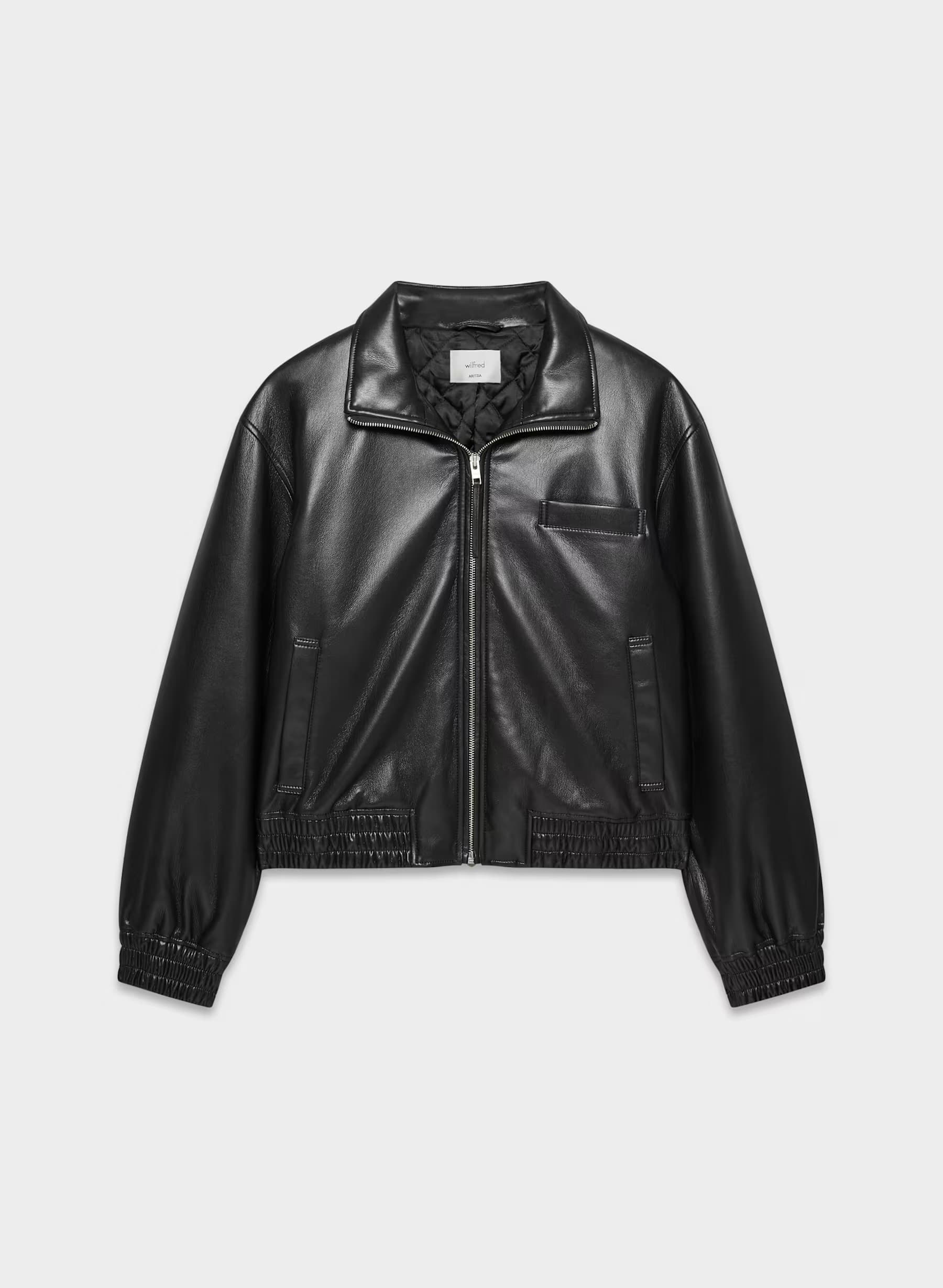 "Speaking of layering, this buttery-soft vegan leather Aritzia bomber has become my favorite cropped fall jacket. It's also perfect for travel—I wore it as my only jacket for a trip from NYC to Los Angeles, and it was easily dressed up and down for day to night. Plus, zipping it up with the subtle funnel neck feels so on trend for the season." - Xue