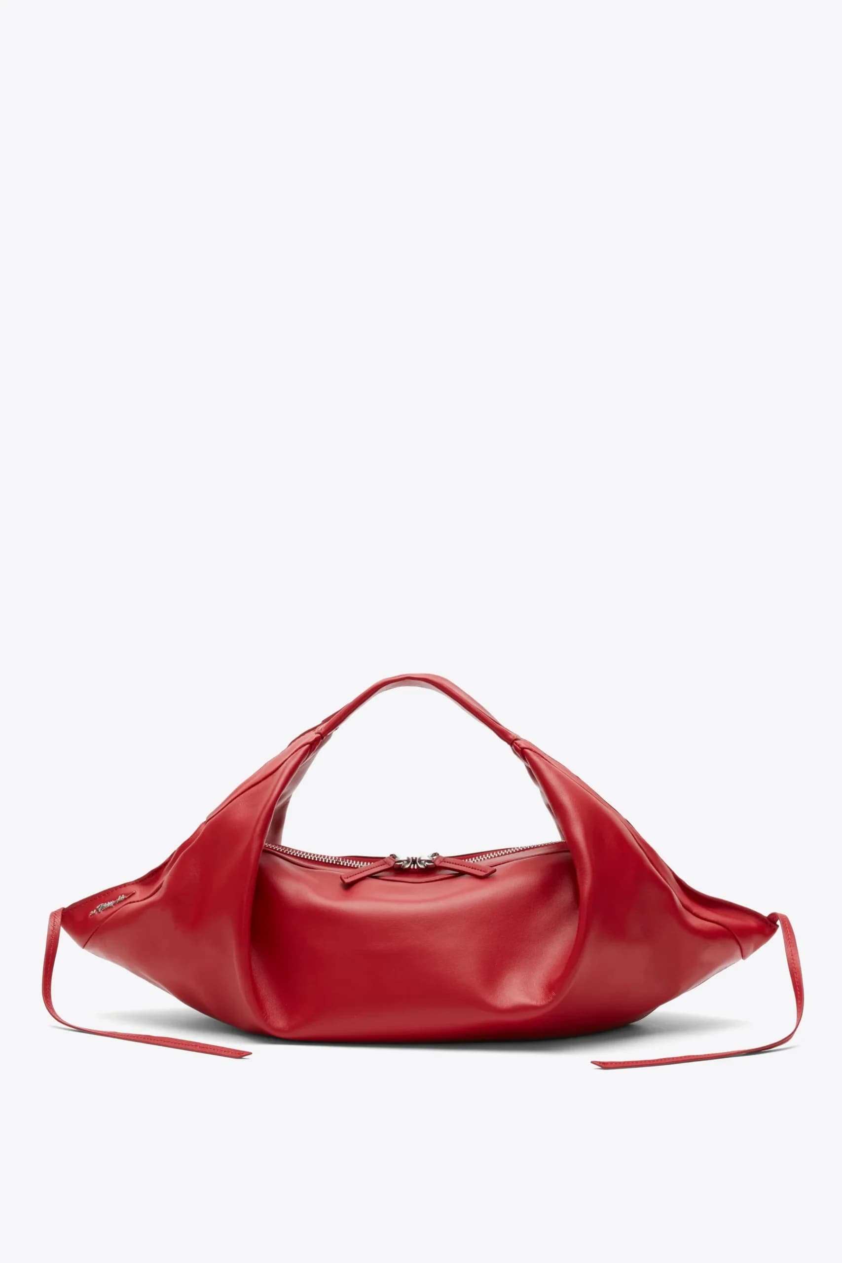 "Ella and I saw this at the showroom last week, and I haven't stopped thinking about it. The bag's silhouette draws inspiration from origami art, and it uniquely folds in on itself so you can play with its shape. In this rich crimson shade, it adds the perfect amount of color to neutral-toned fall outfits." - Kala Herh, Social Strategy Lead